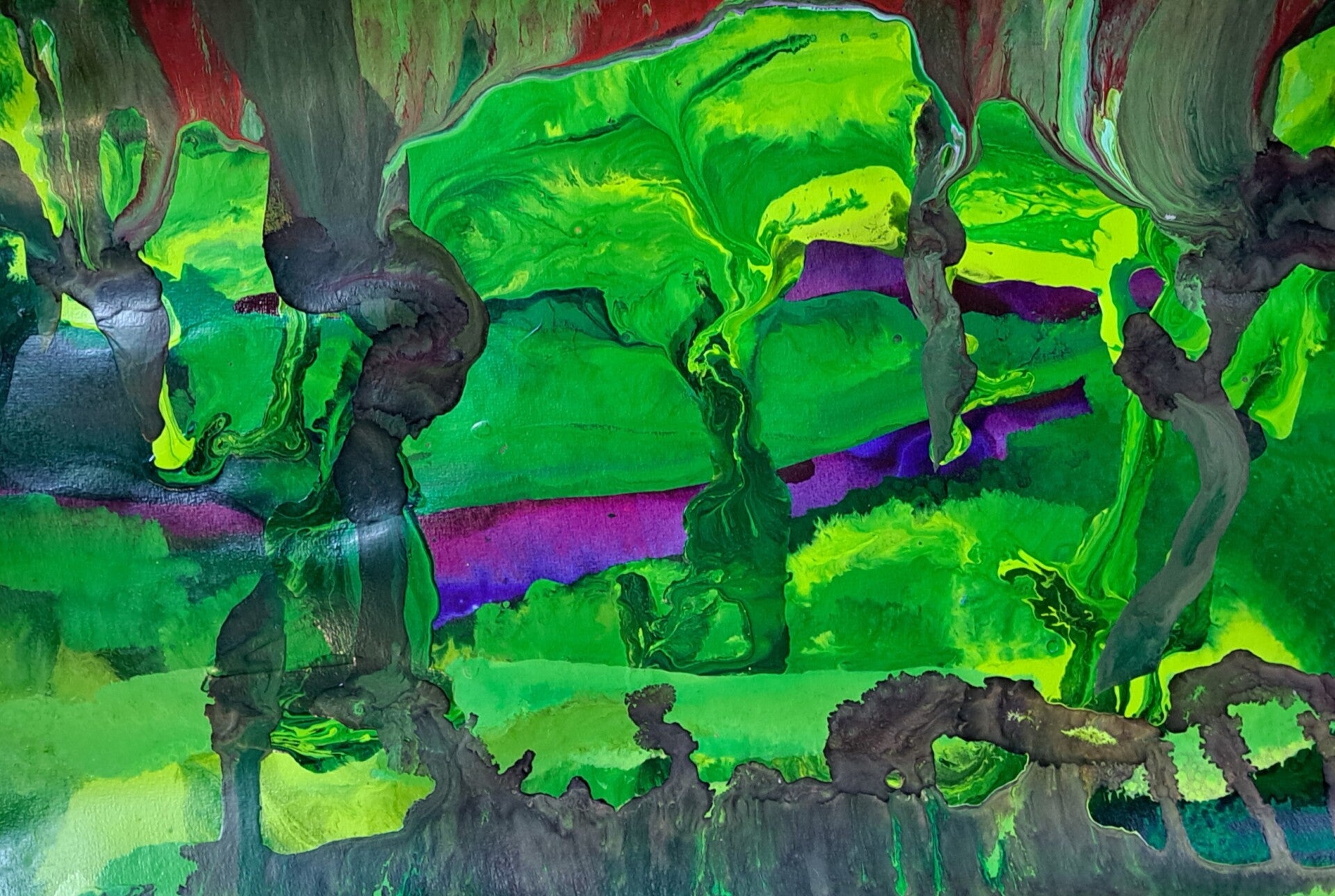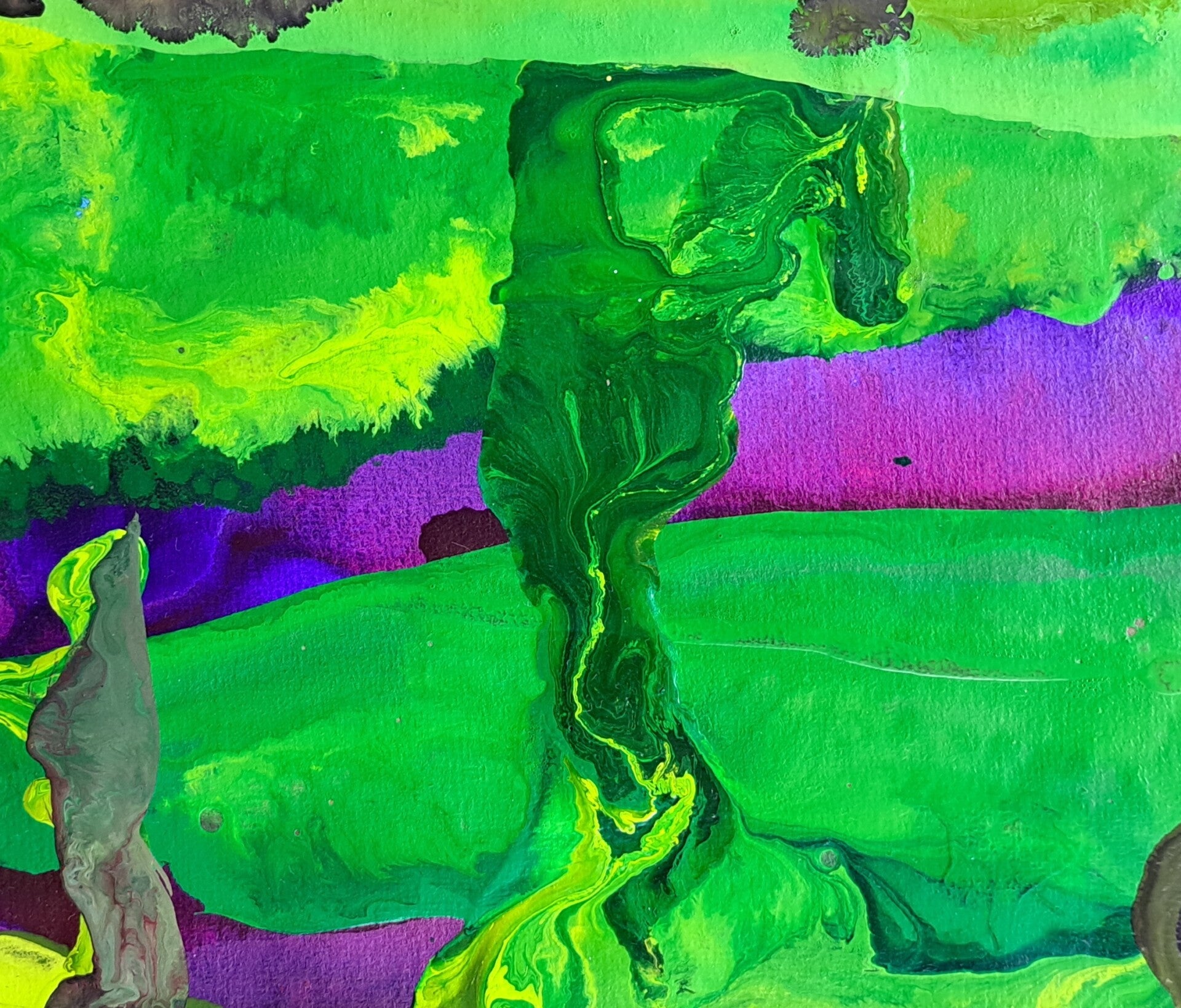 Vloeibare acryl Inkt op acrylbasis (Golden high flow acrylics) op papier ('Aquarelle' 225 g/m2) met de kwast opgebracht.
