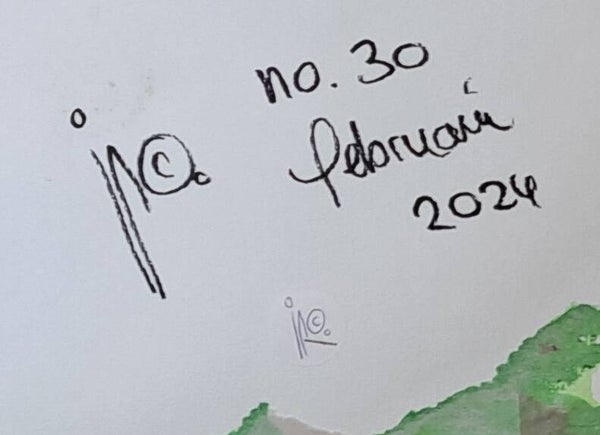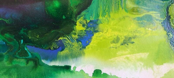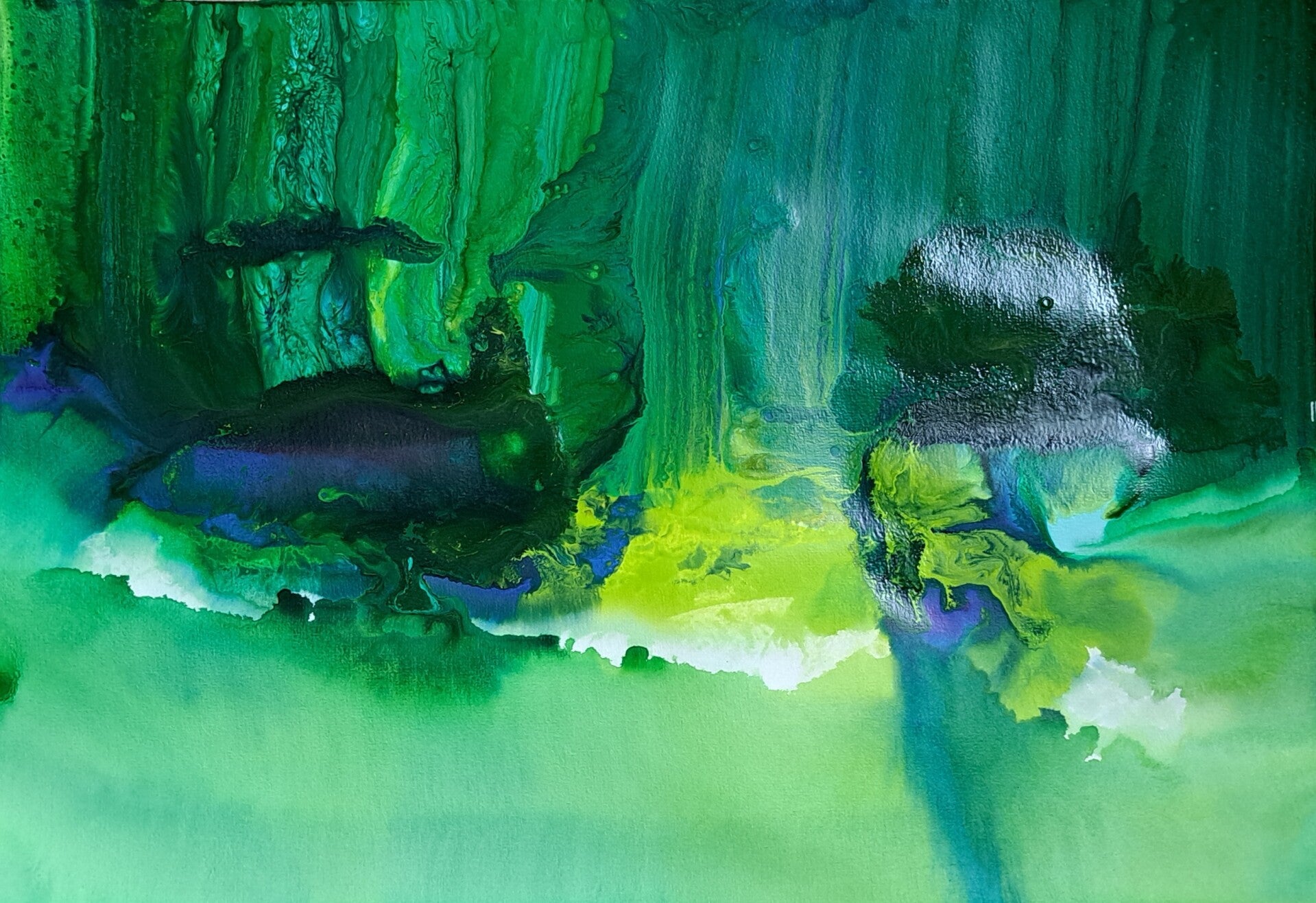 Vloeibare acryl Inkt op acrylbasis (Golden high flow acrylics) op papier ('Aquarelle' 225 g/m2) met de kwast opgebracht.