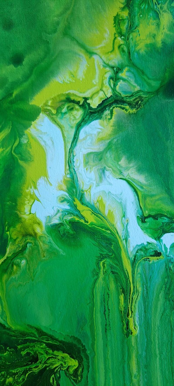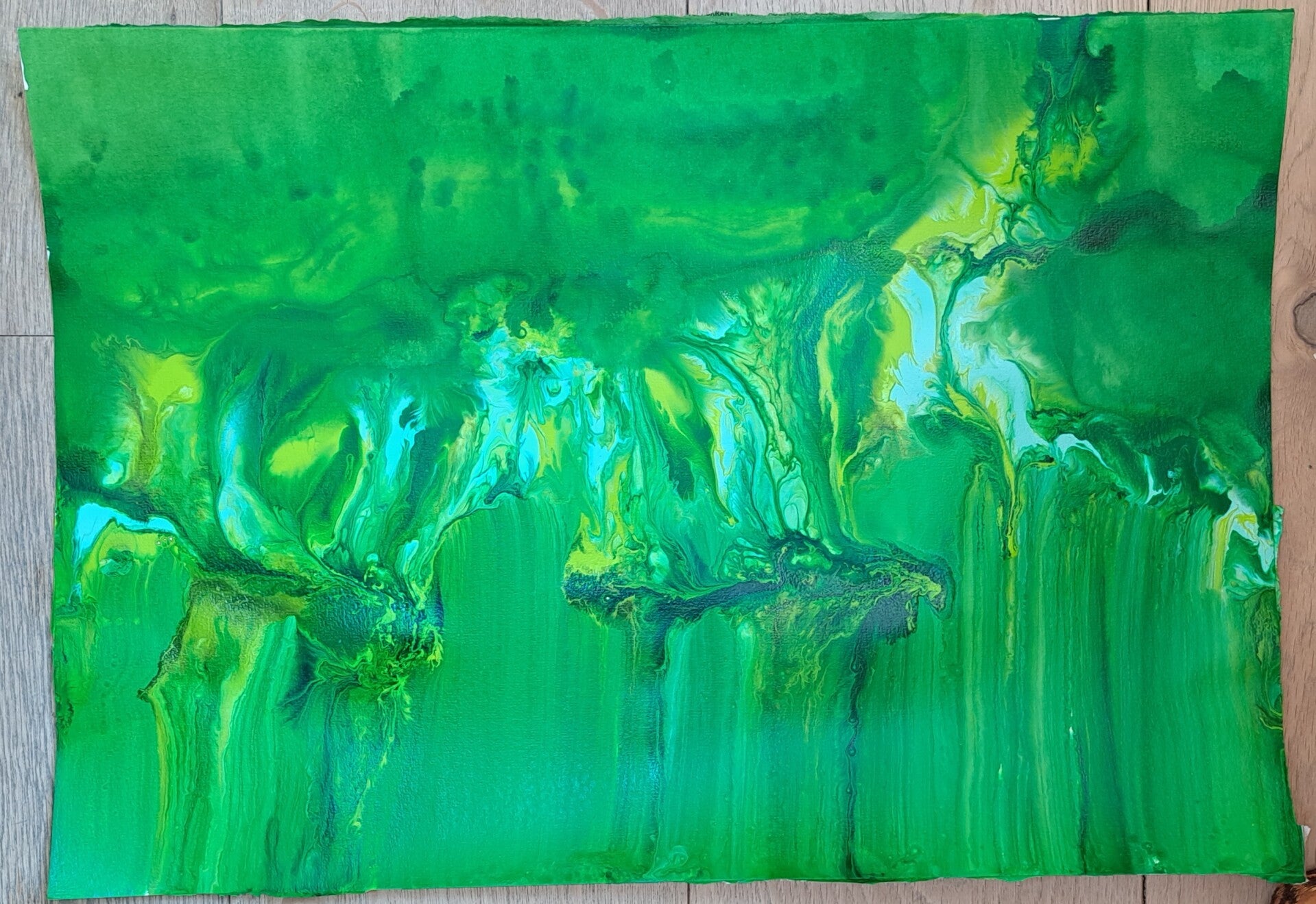 Vloeibare acryl Inkt op acrylbasis (Golden high flow acrylics) op papier ('Aquarelle' 225 g/m2) met de kwast opgebracht.