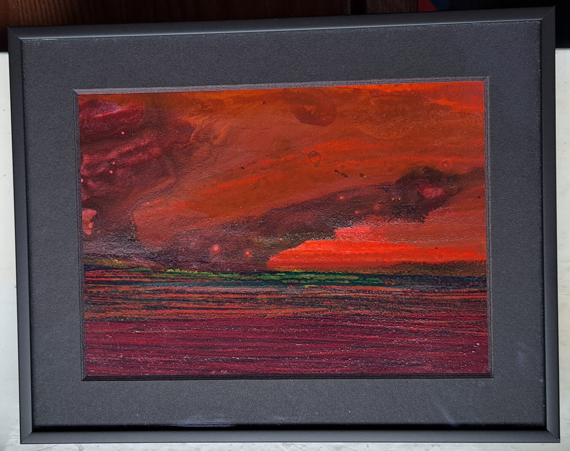 Foto's: het kunstwerk, ingelijst 1, ingelijst 2, achterkant lijst.