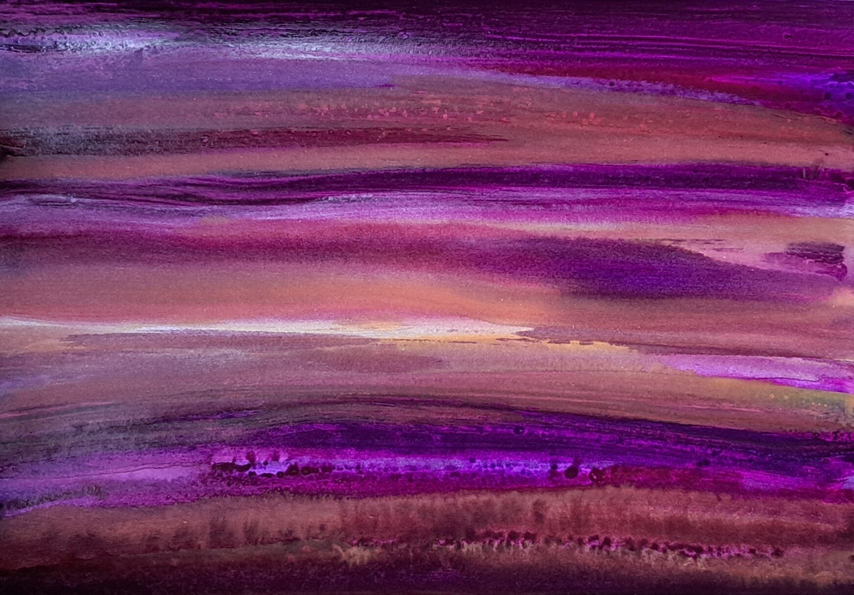 Vloeibare acryl Inkt op acrylbasis (Golden high flow acrylics) met de kwast opgebracht.