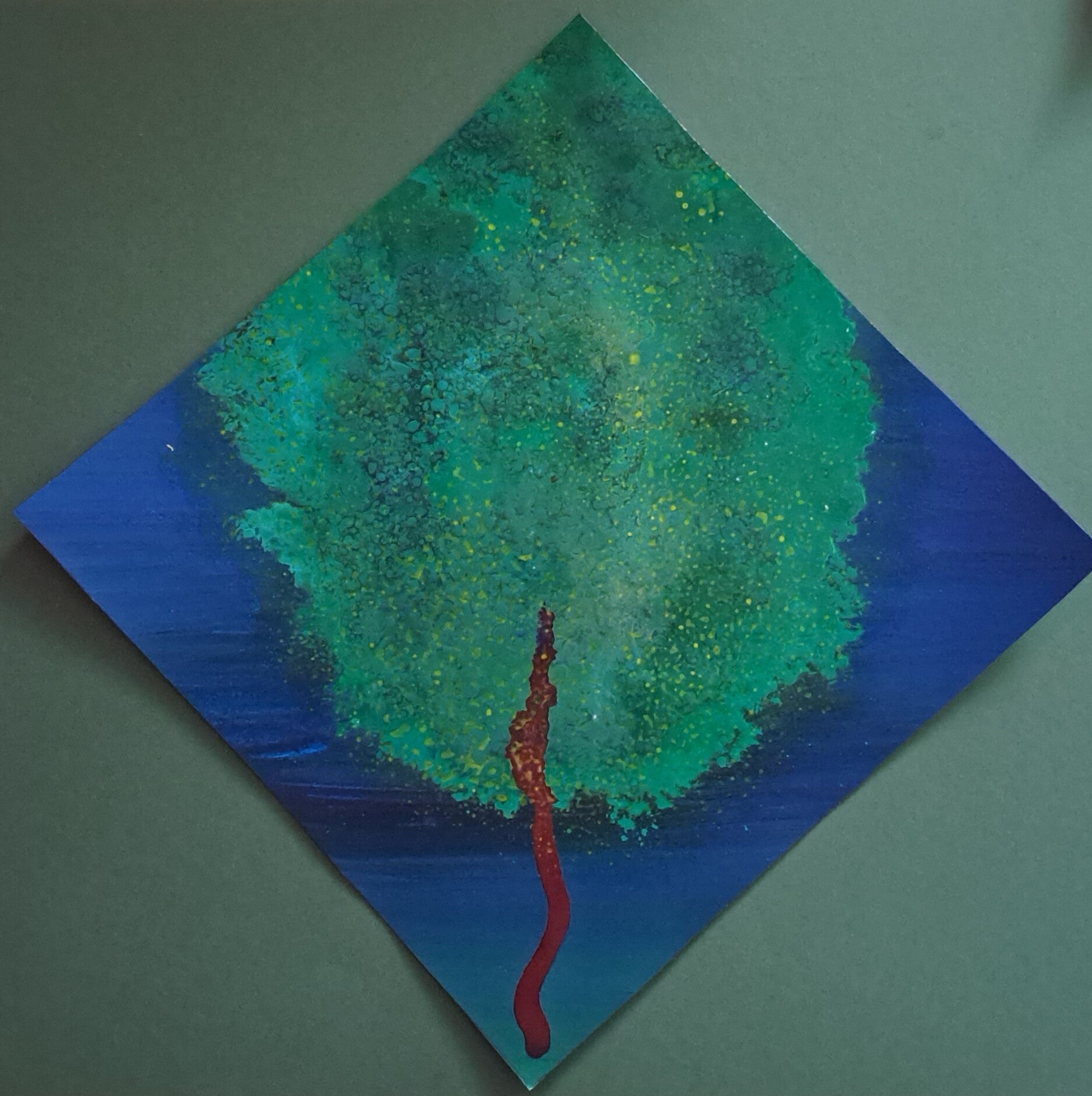 Vloeibare acryl Inkt op acrylbasis (Golden high flow acrylics) op papier met de kwast opgebracht. Formaat 33x33 cm.