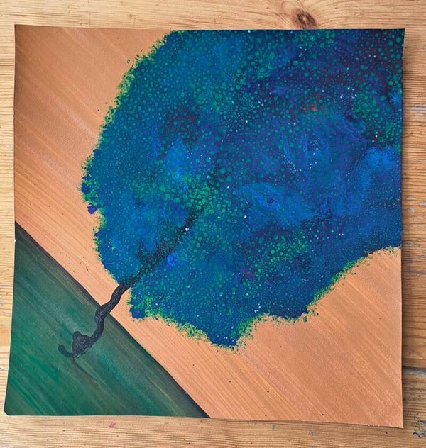 Vloeibare acryl Inkt op acrylbasis (Golden high flow acrylics) op papier met de kwast opgebracht. Formaat 33x33 cm.