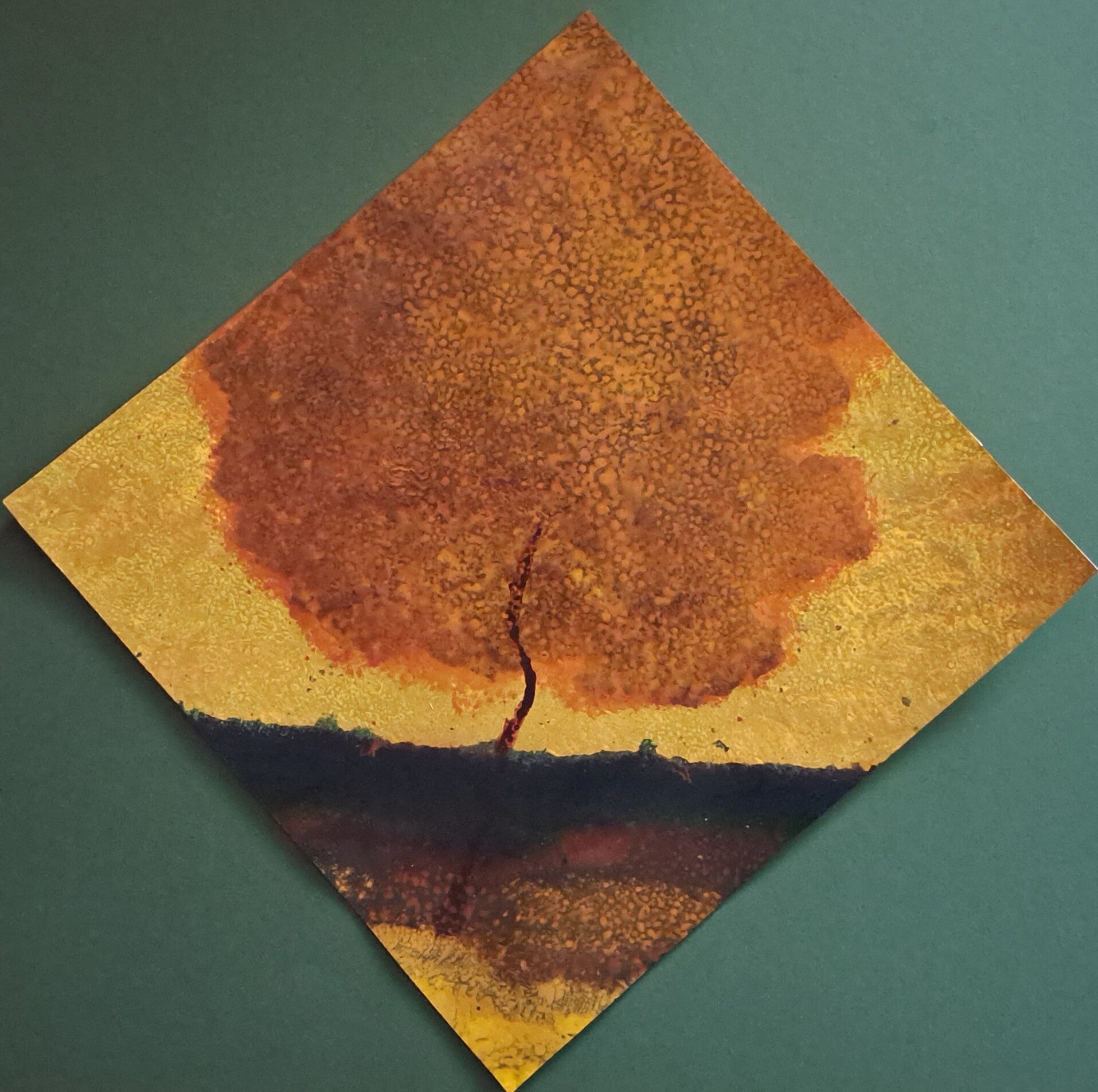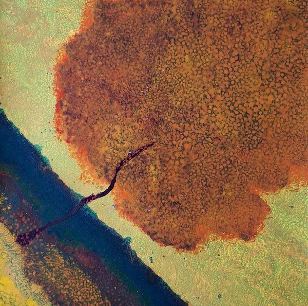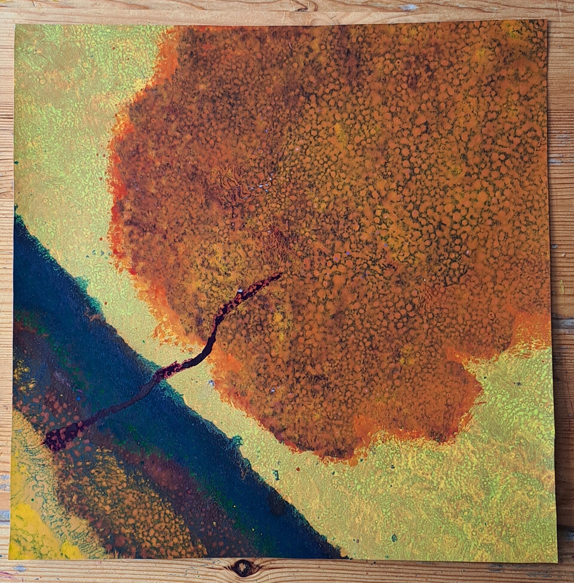 Vloeibare acryl Inkt op acrylbasis (Golden high flow acrylics) op papier met de kwast opgebracht. Formaat 33x33 cm.