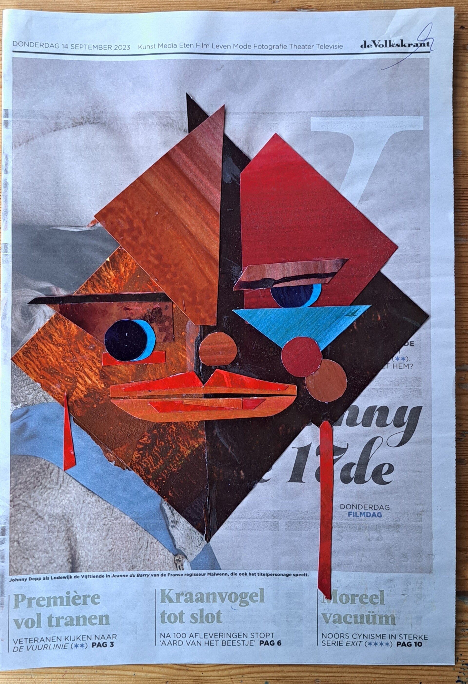 Grote vellen papier zijn bewerkt met veel vloeibare acryl/ inkt op acrylbasis (Golden high flow acrylics) met de kwast opgebracht. Door op de gedroogde laag nog meer inkt te smeren vormen zich meestal bolletjes, van kleur; de inkt wordt door de onderlaag afgestoten. Uit die vellen wordt geknipt. Er wordt geen ontwerp gemaakt; het ene stuk roept het volgend eop en vraagt om het volgende. Een zin, een woord, een vorm uit de krant, de pagina die gebruikt wordt als onderlegger, is de aanleiding van het werk