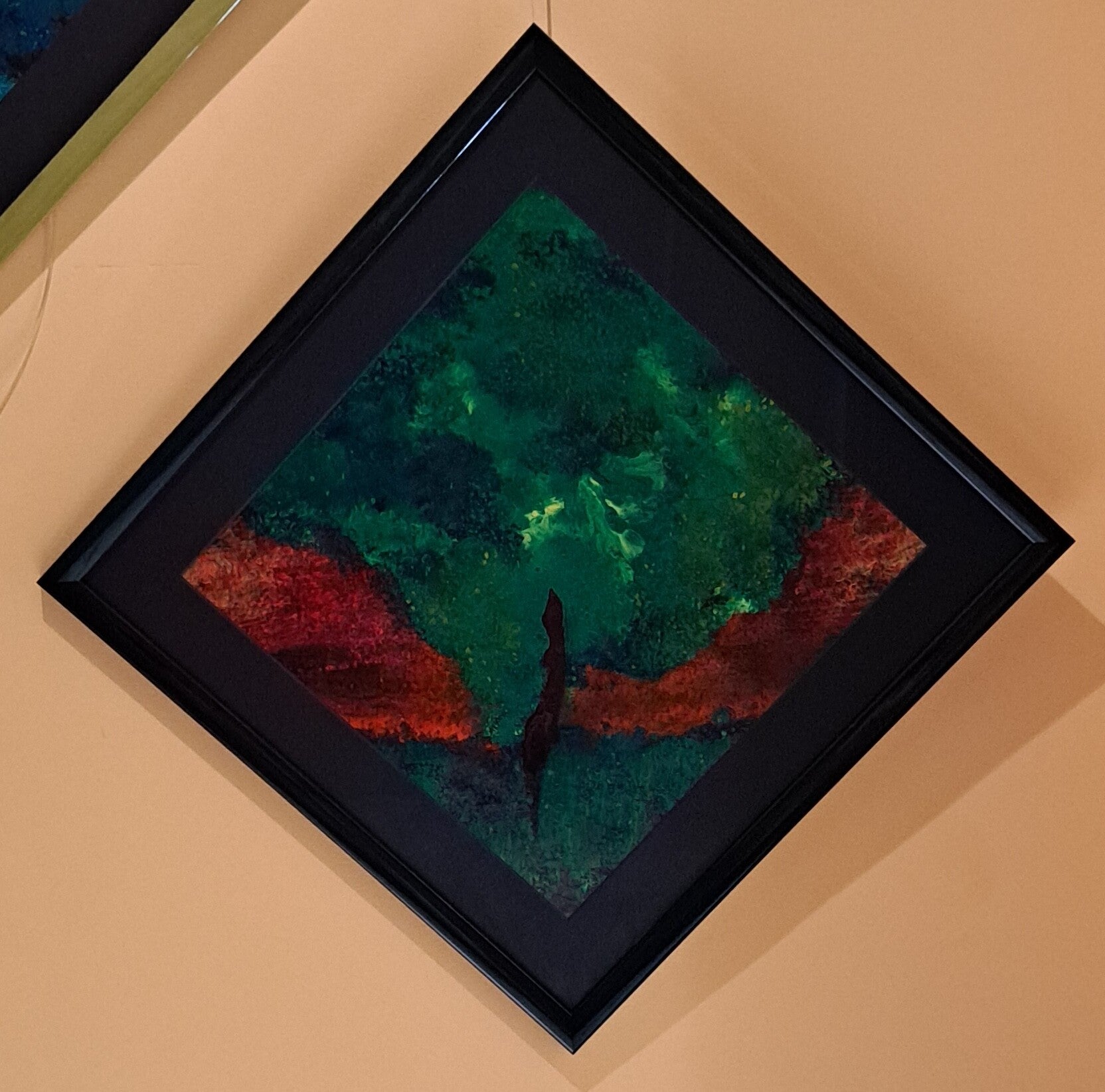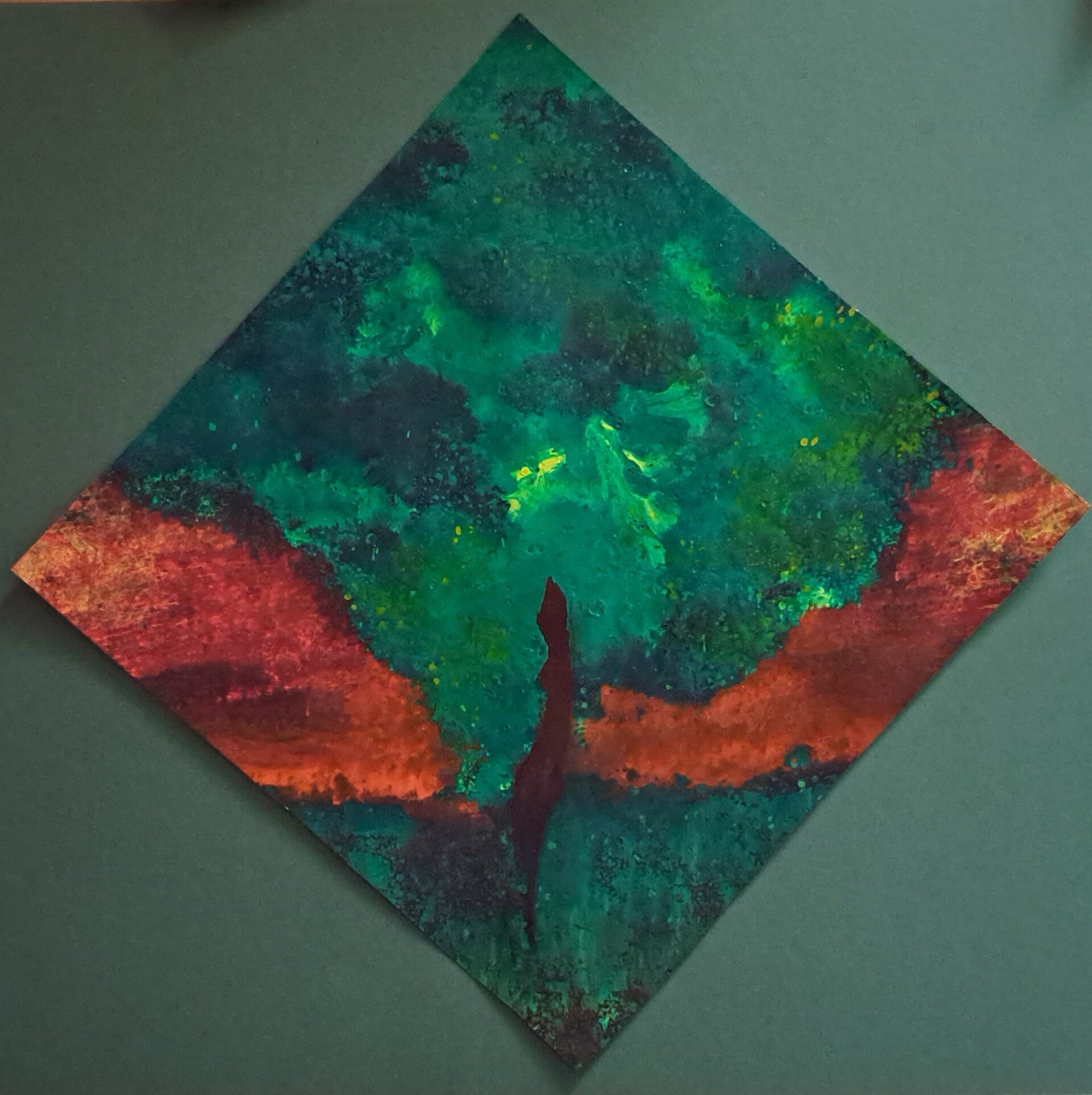 Vloeibare acryl Inkt op acrylbasis (Golden high flow acrylics) op papier met de kwast opgebracht. Beeldformaat 33x33 cm.