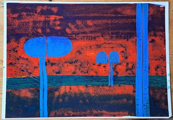 Rafelranden, beschadigingetjes, vouwen ed. maken onderdeel van het werk en zijn inherent aan het schilderen op oud, gebruikt krantenpapier
