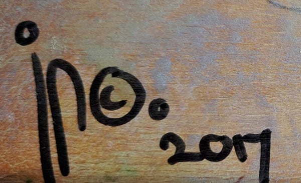Foto's: het kunstwerk, met lijst, details, handtekening, achterkant