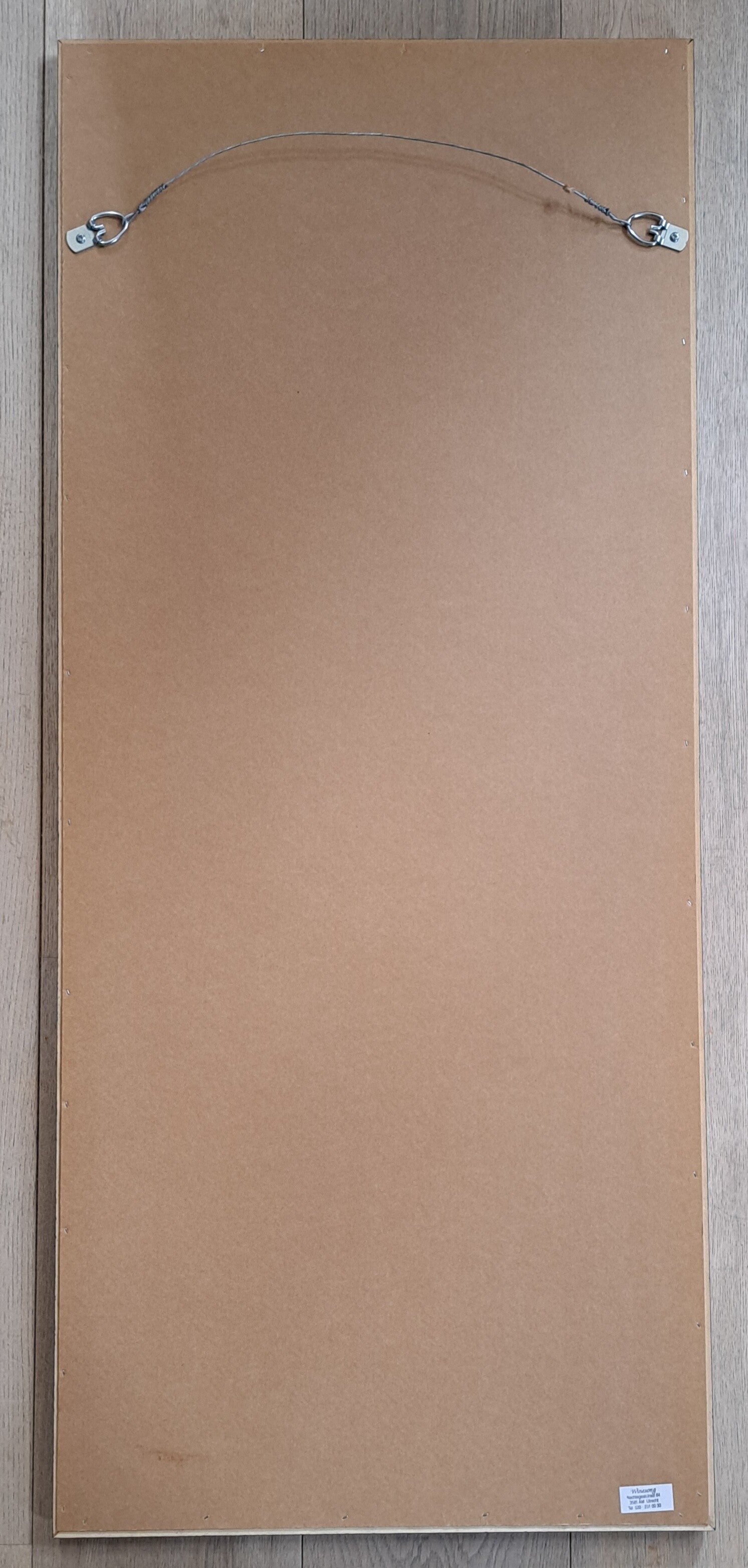 Formaat:beeldmaat ca. 40x96 cm, met lijst 56x116 cm, geschilderd met acrylverf op triplex.