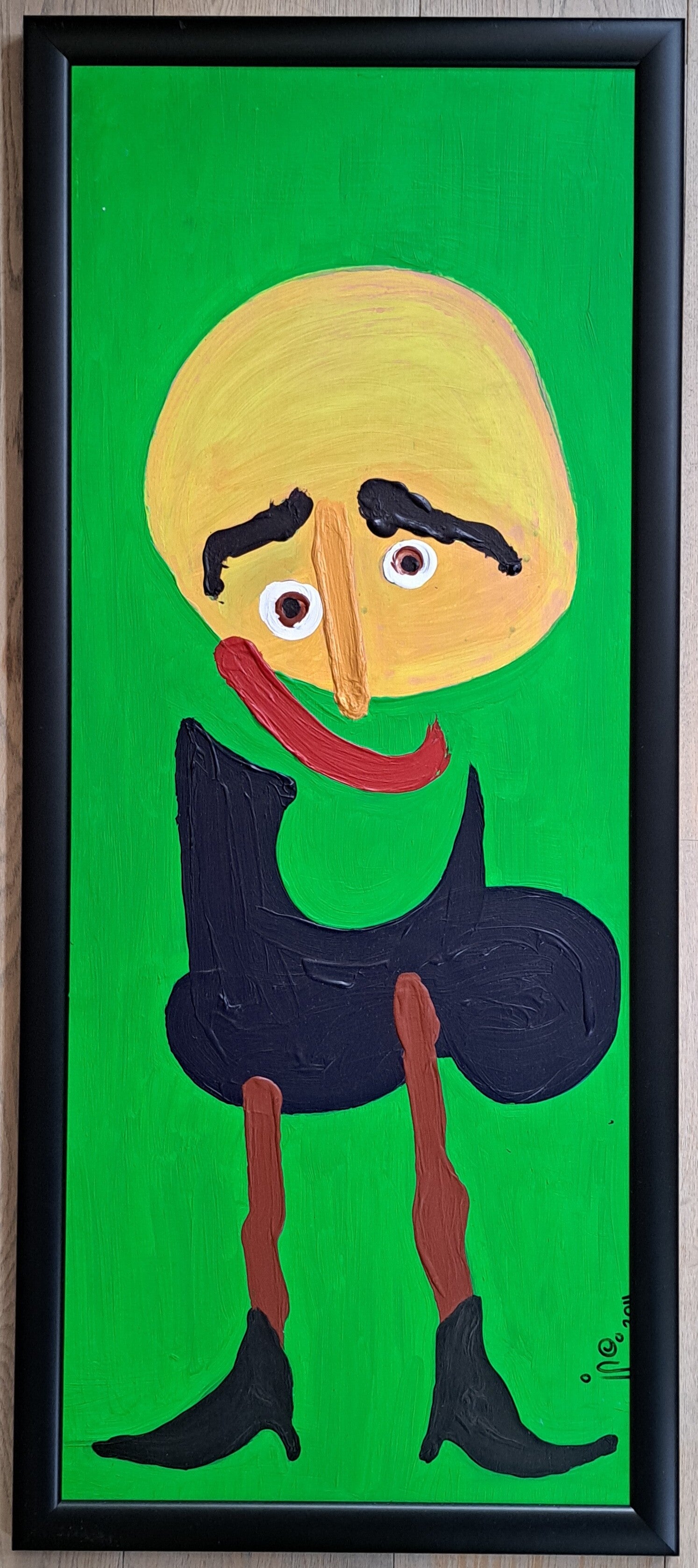 Formaat:beeldmaat ca. 40x96 cm, met lijst 56x116 cm, geschilderd met acrylverf op triplex.