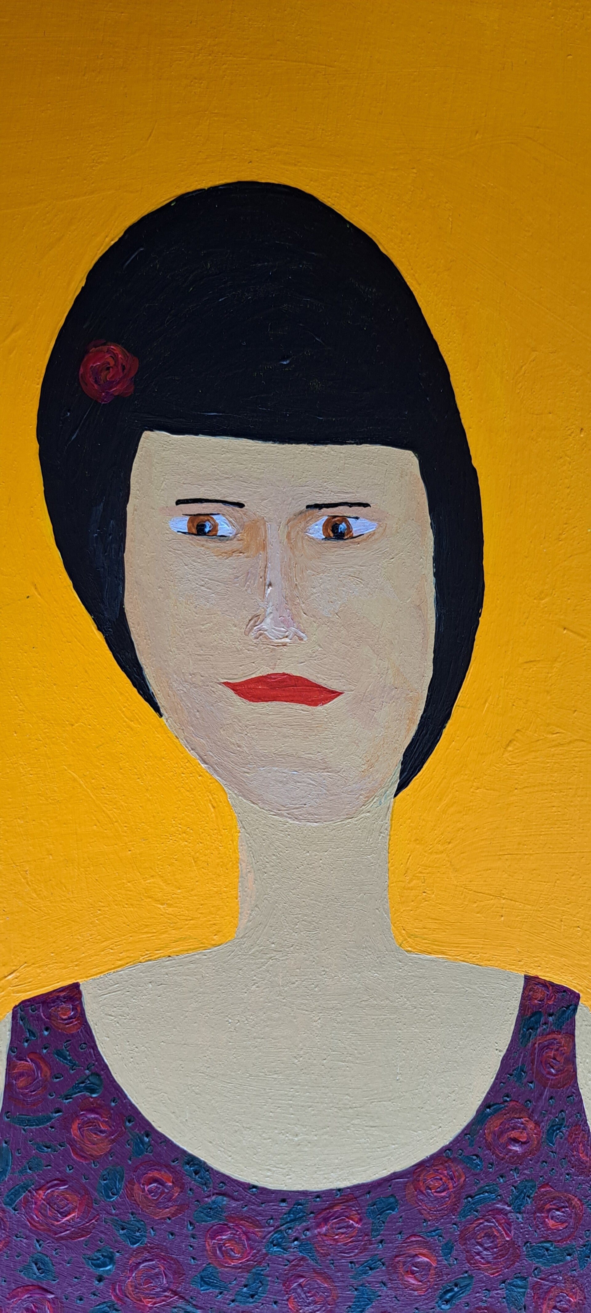 Achtergrond. Dit werk is er een uit een serie van 105 schilderijen. Ik volgde de ontwikkeling vanaf kleuters tot kunstenaars al staat die ontwikkeling niet vast en nam 'vrouwen' als onderwerp. De mate van waarneming en het beheersen van vaardigheden bepalen hoe een vrouw weergegeven wordt.