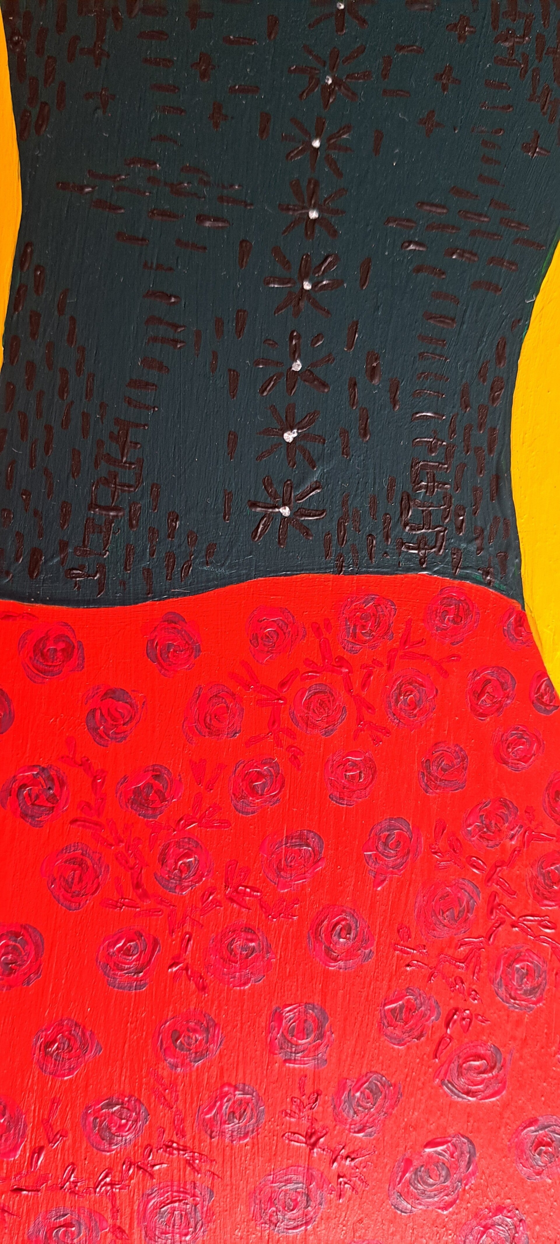 Formaat:beeldmaat ca. 40x96 cm, met lijst 56x116 cm, geschilderd met acrylverf op triplex.