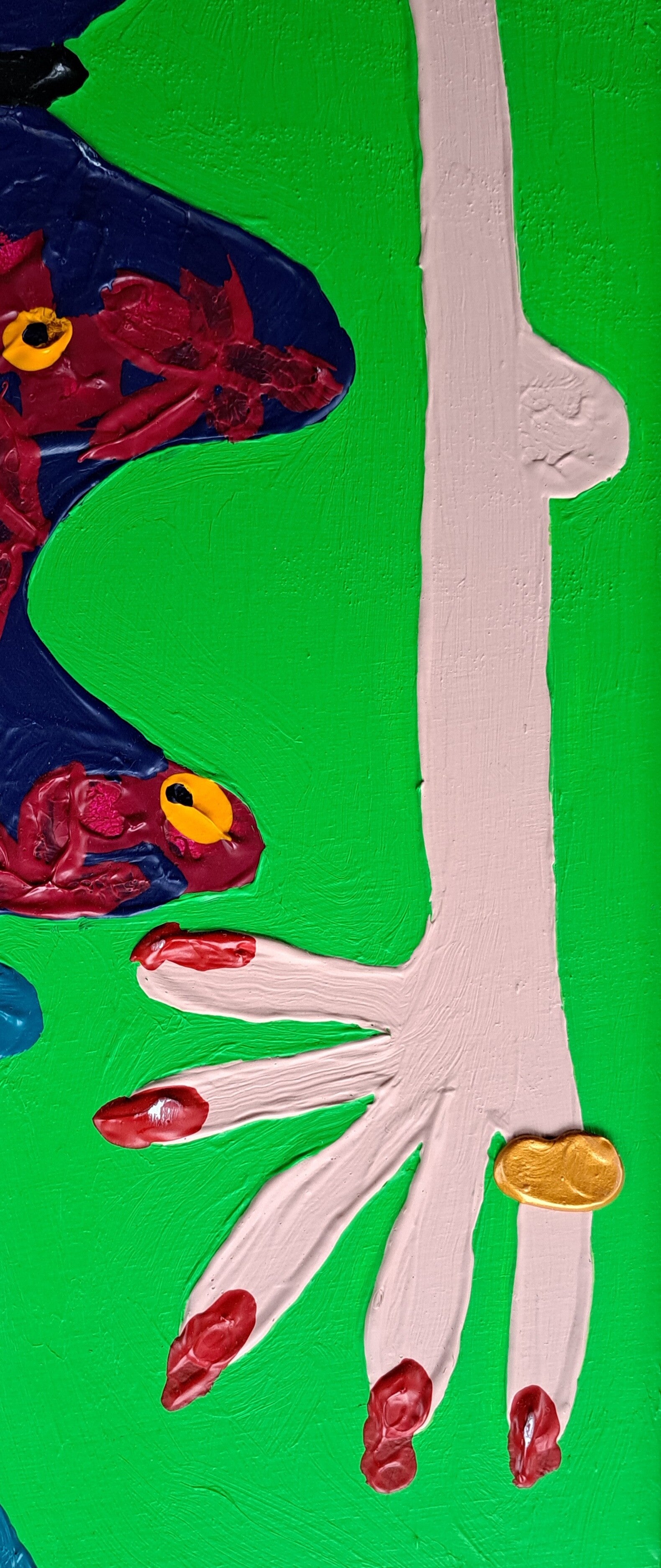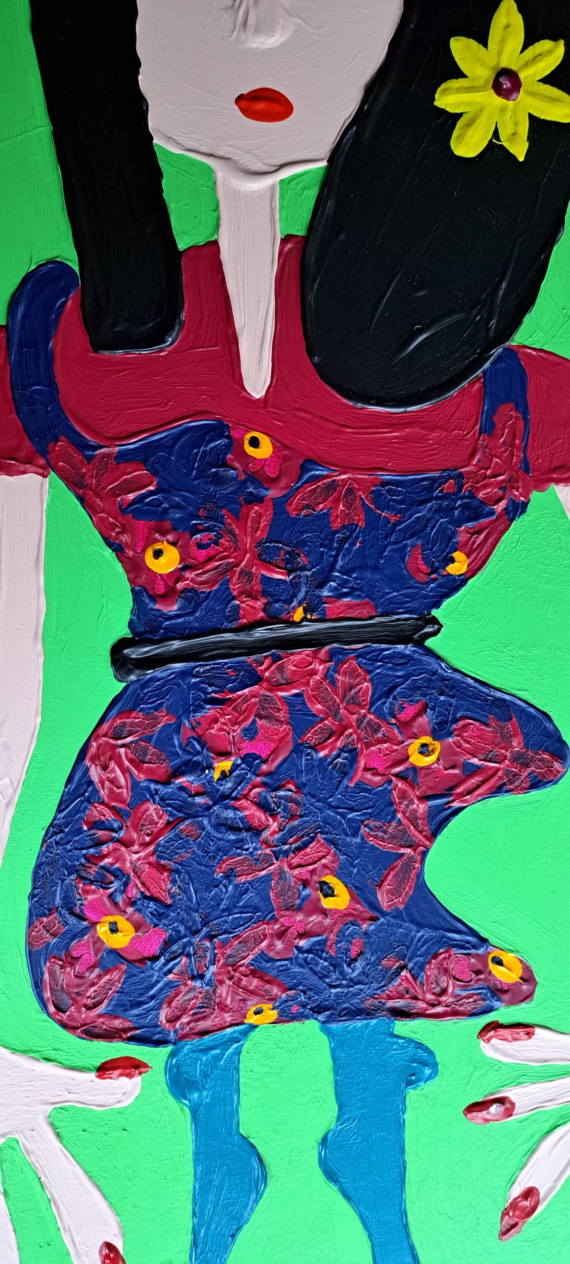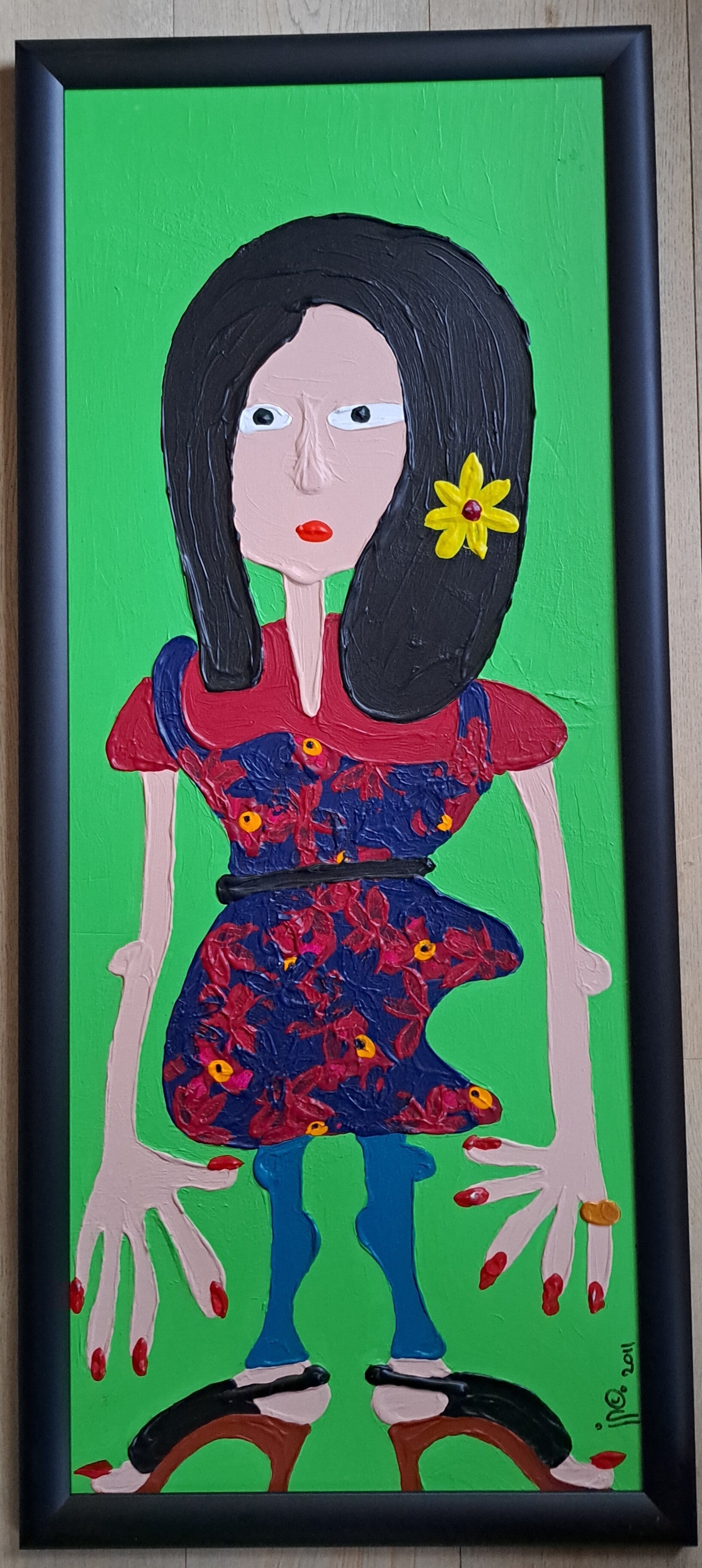 Achtergrond. Dit werk is er een uit een serie van 105 schilderijen. Ik volgde de ontwikkeling vanaf kleuters tot kunstenaars al staat die ontwikkeling niet vast en nam 'vrouwen' als onderwerp. De mate van waarneming en het beheersen van vaardigheden bepalen hoe een vrouw weergegeven wordt.