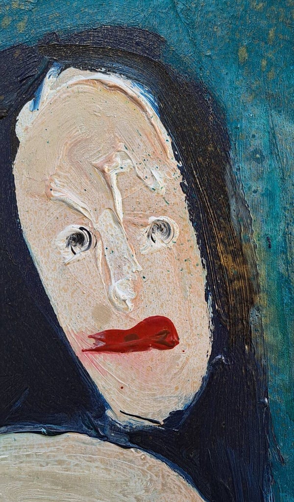 Achtergrond. Dit werk is er een uit een serie van 105 schilderijen. Ik volgde de ontwikkeling vanaf kleuters tot kunstenaars al staat die ontwikkeling niet vast en nam 'vrouwen' als onderwerp. De mate van waarneming en het beheersen van vaardigheden bepalen hoe een vrouw weergegeven wordt.