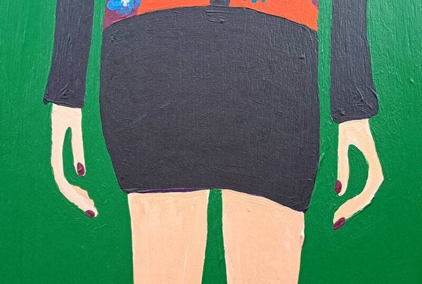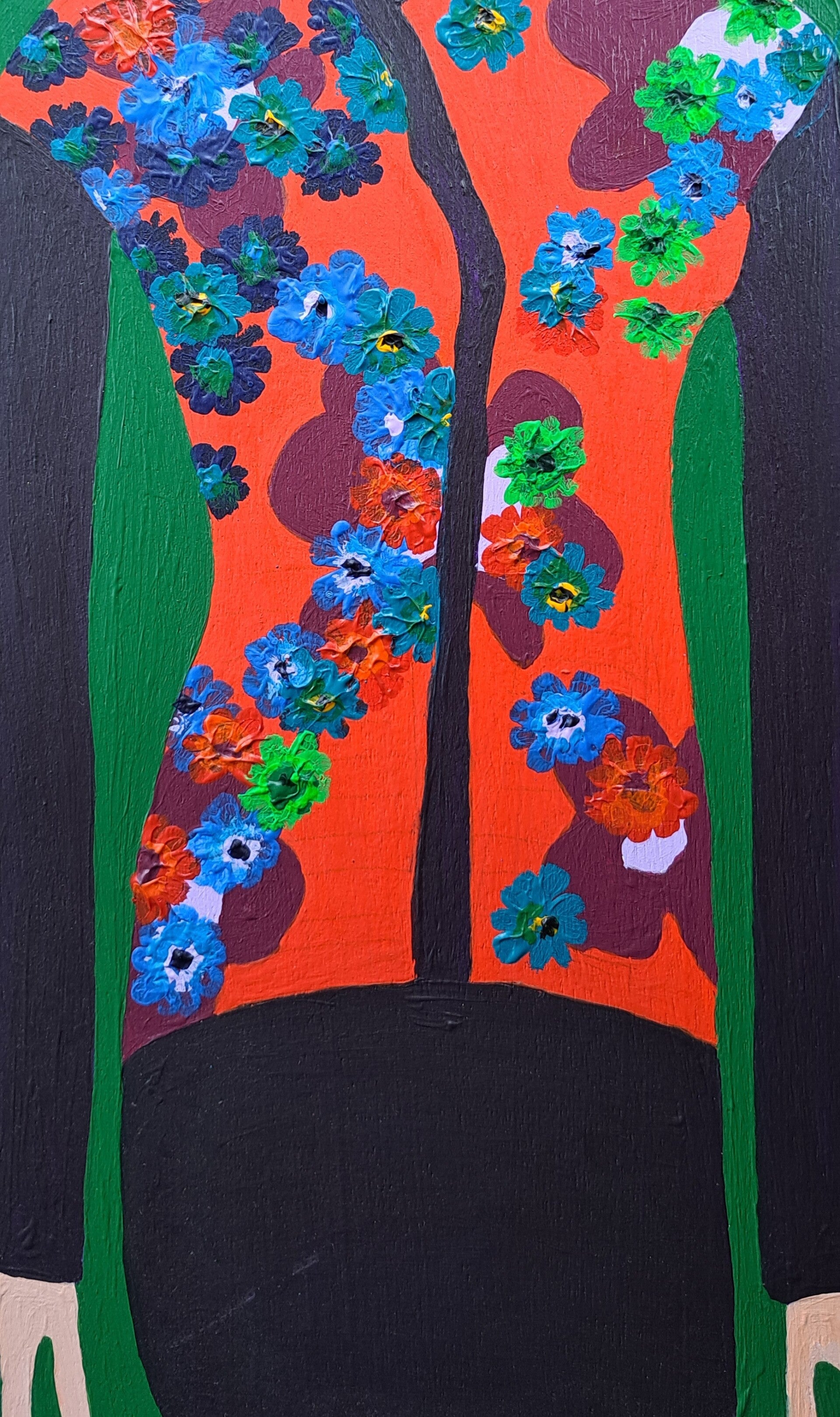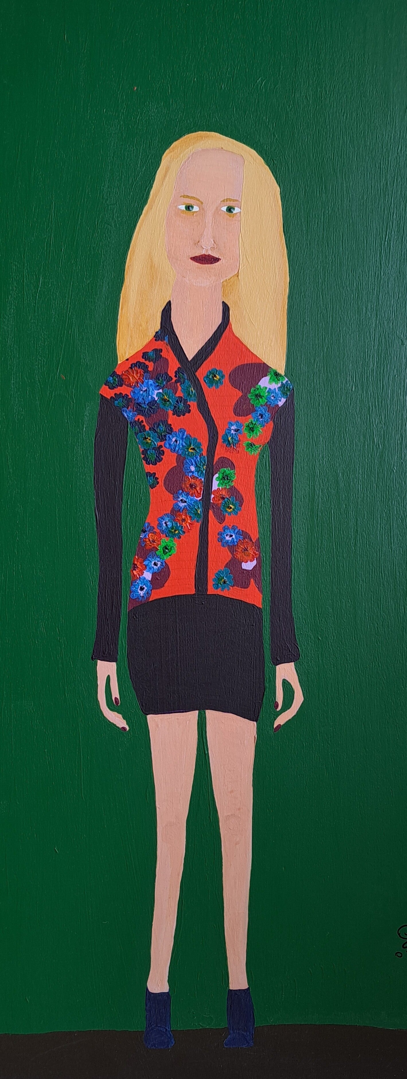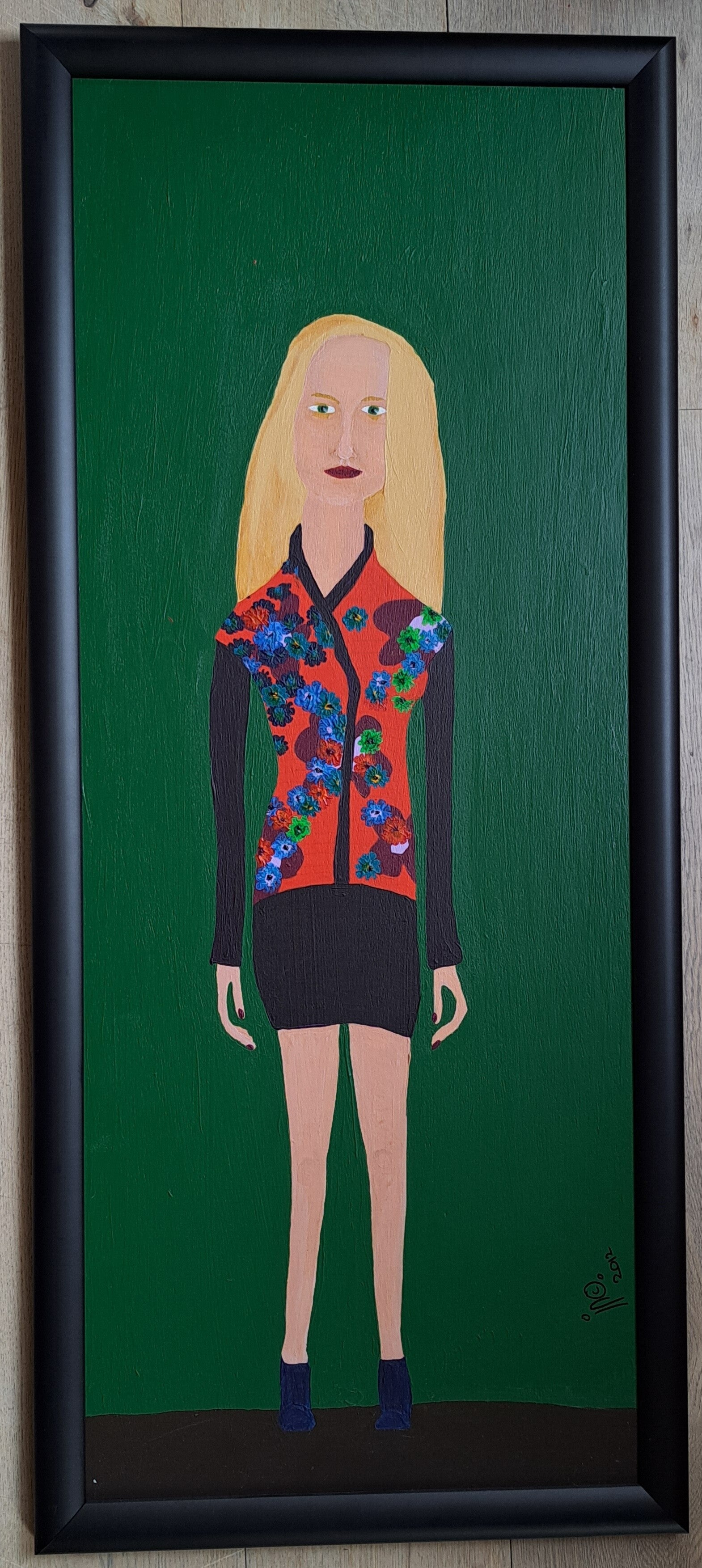Achtergrond. Dit werk is er een uit een serie van 105 schilderijen. Ik volgde de ontwikkeling vanaf kleuters tot kunstenaars al staat die ontwikkeling niet vast en nam 'vrouwen' als onderwerp. De mate van waarneming en het beheersen van vaardigheden bepalen hoe een vrouw weergegeven wordt.
