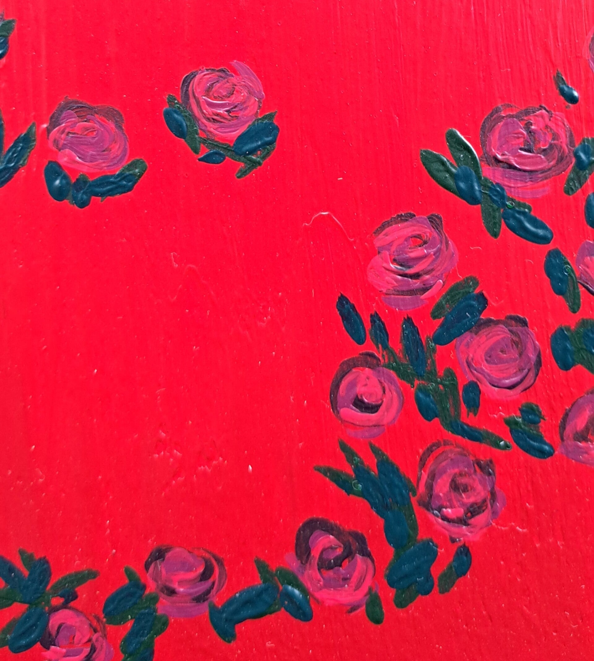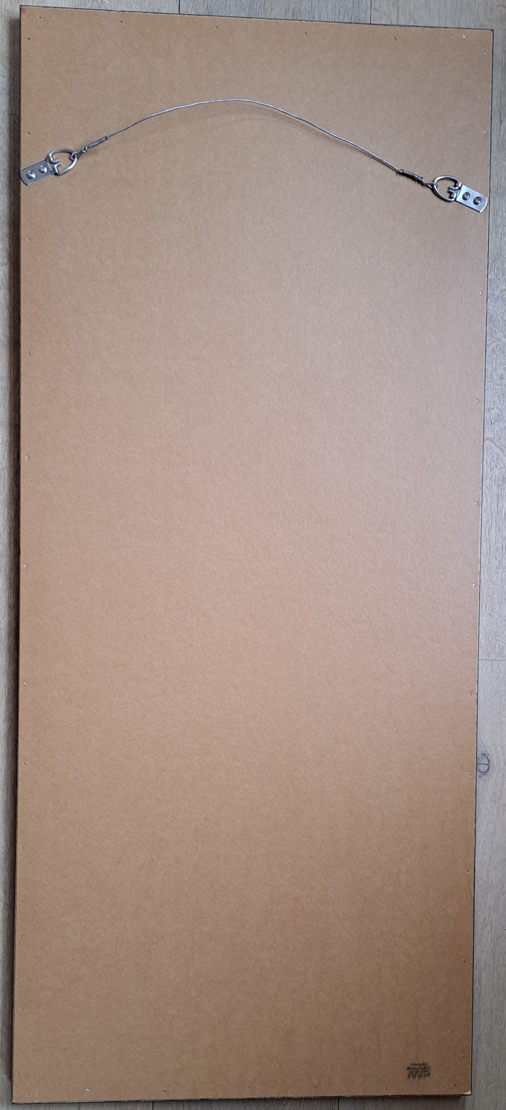 Formaat:beeldmaat ca. 40x96 cm, met lijst 56x116 cm, geschilderd met acrylverf op triplex.