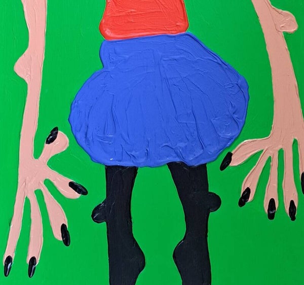 Achtergrond. Dit werk is er een uit een serie van 105 schilderijen. Ik volgde de ontwikkeling vanaf kleuters tot kunstenaars al staat die ontwikkeling niet vast en nam 'vrouwen' als onderwerp. De mate van waarneming en het beheersen van vaardigheden bepalen hoe een vrouw weergegeven wordt.