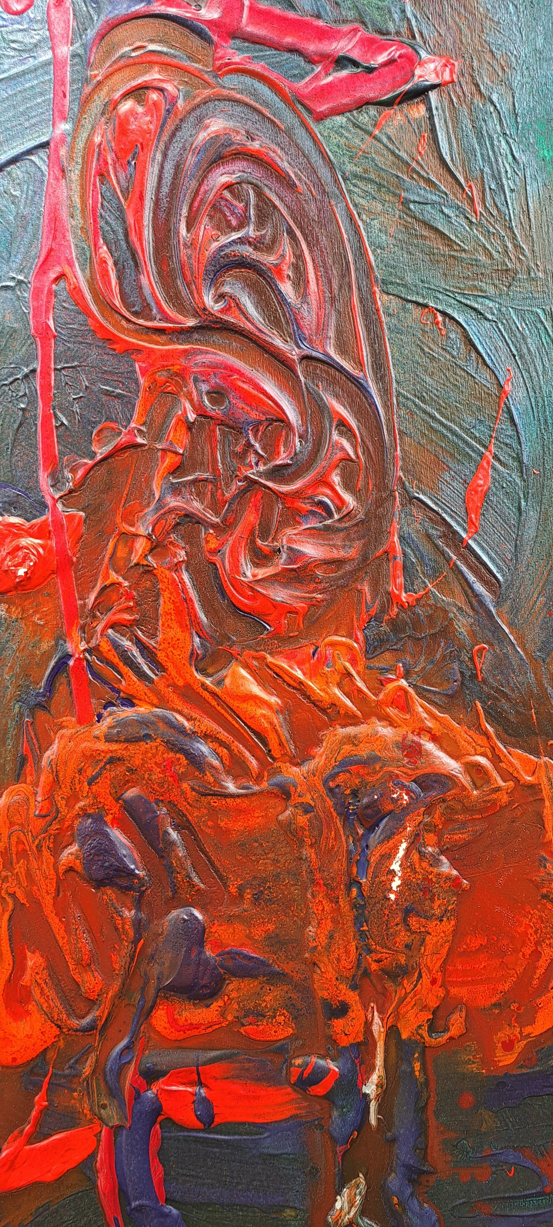 Achtergrond. Dit werk is er een uit een serie van 105 schilderijen. Ik volgde de ontwikkeling vanaf kleuters tot kunstenaars al staat die ontwikkeling niet vast en nam 'vrouwen' als onderwerp. De mate van waarneming en het beheersen van vaardigheden bepalen hoe een vrouw weergegeven wordt.