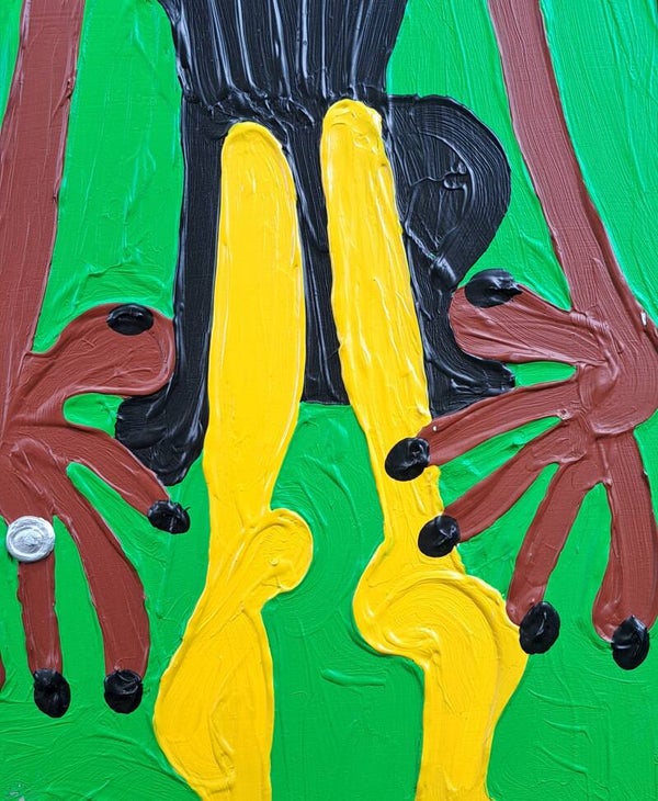 Achtergrond. Dit werk is er een uit een serie van 105 schilderijen. Ik volgde de ontwikkeling vanaf kleuters tot kunstenaars al staat die ontwikkeling niet vast en nam 'vrouwen' als onderwerp. De mate van waarneming en het beheersen van vaardigheden bepalen hoe een vrouw weergegeven wordt.