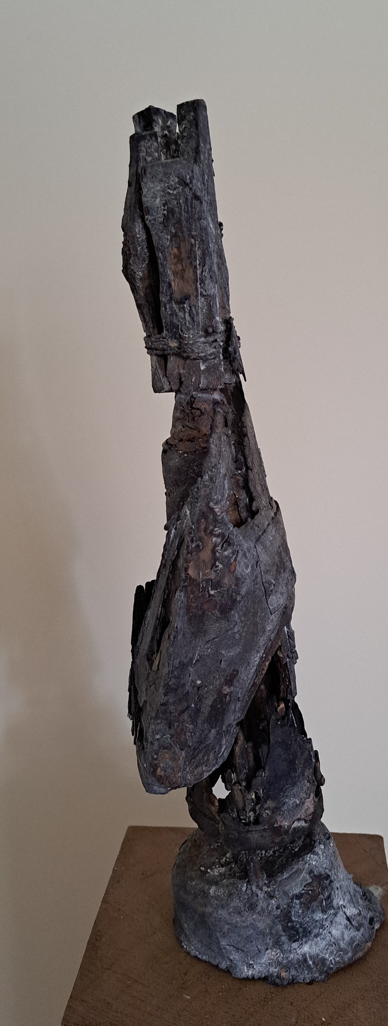 De bronsgieter heeft om dit beeld van afval een gipsen mal gemaakt. Deze mal met beeld gaat de oven in. De rommel, het afval brandt weg. In de holle ruimte blijven asresten over, stukjes onbrandbaar materiaal. In de ruimte die ontstaat wordt brons gegoten. Niet overal kan het vloeibare brons komen; de ruimte is te klein of wordt geblokkeerd. De mal wordt kapotgeslagen. Het oorspronkelijke beeld van afval is in benadering in brons uit de mal gehaald. Het beeld werd minimaal afgewerkt. Met dank aan de bronsgieter Yakov Sala, Arhnem
