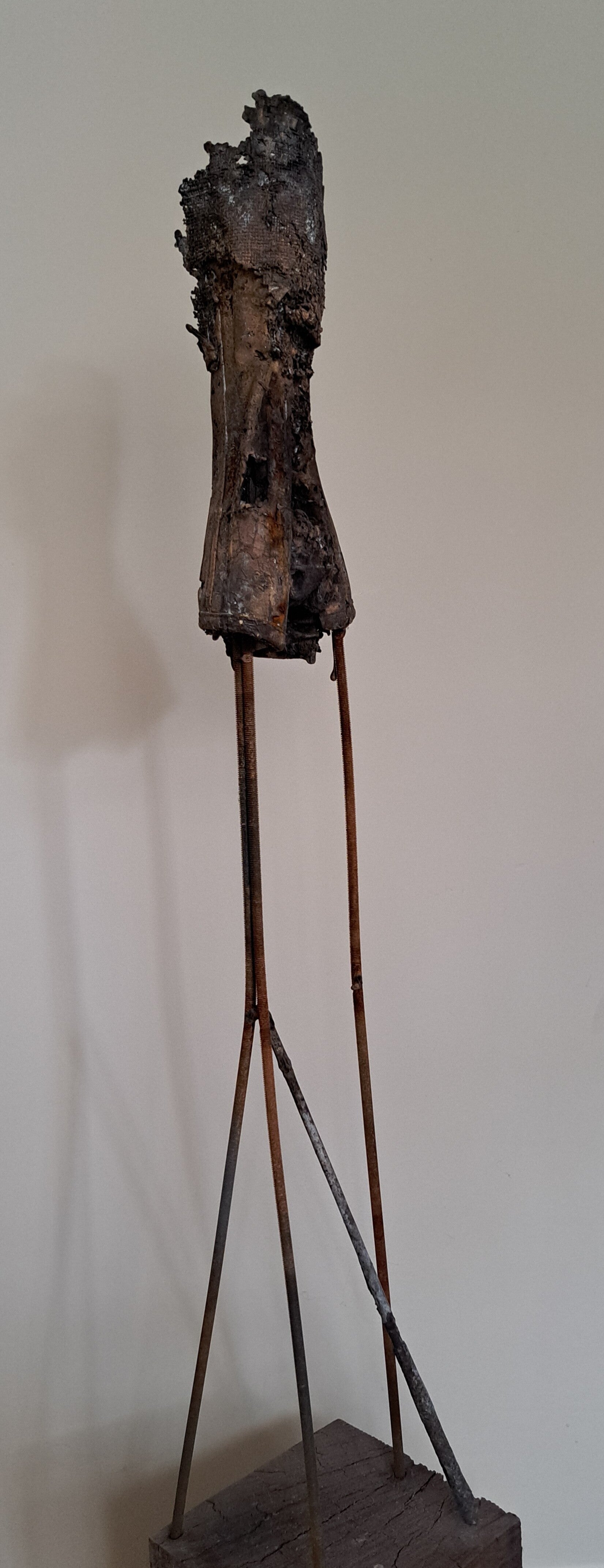 De bronsgieter heeft om dit beeld van afval een gipsen mal gemaakt. Deze mal met beeld gaat de oven in. De rommel, het afval brandt weg. In de holle ruimte blijven asresten over, stukjes onbrandbaar materiaal. In de ruimte die ontstaat wordt brons gegoten. Niet overal kan het vloeibare brons komen; de ruimte is te klein of wordt geblokkeerd. De mal wordt kapotgeslagen. Het oorspronkelijke beeld van afval is in benadering in brons uit de mal gehaald. Het beeld werd minimaal afgewerkt. Met dank aan de bronsgieter Yakov Sala, Arhnem