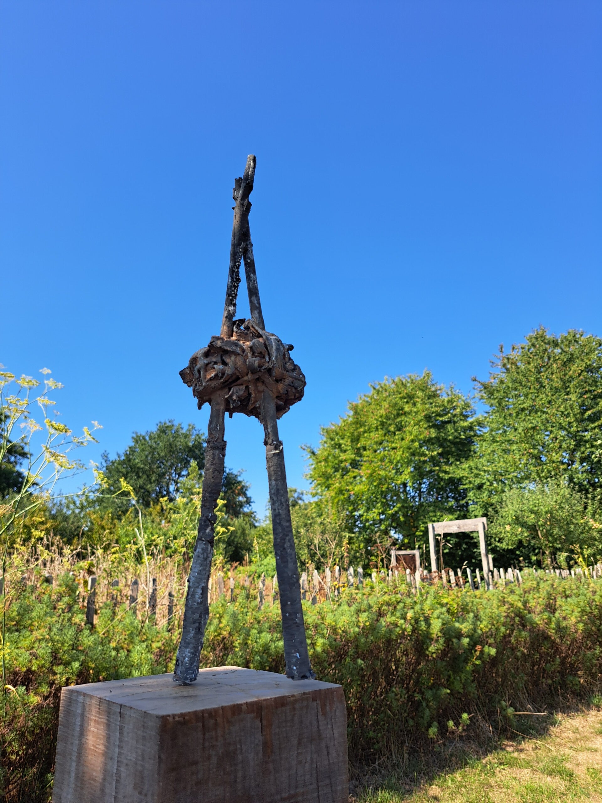 Danseres: Ze doet denken aan de danseres van Degas. Niet echt een idee waarom. Zijn het haar lange benen? De houding? Tegen de blauwe lucht is het een gevangen wolk, een boomhuis, een ...