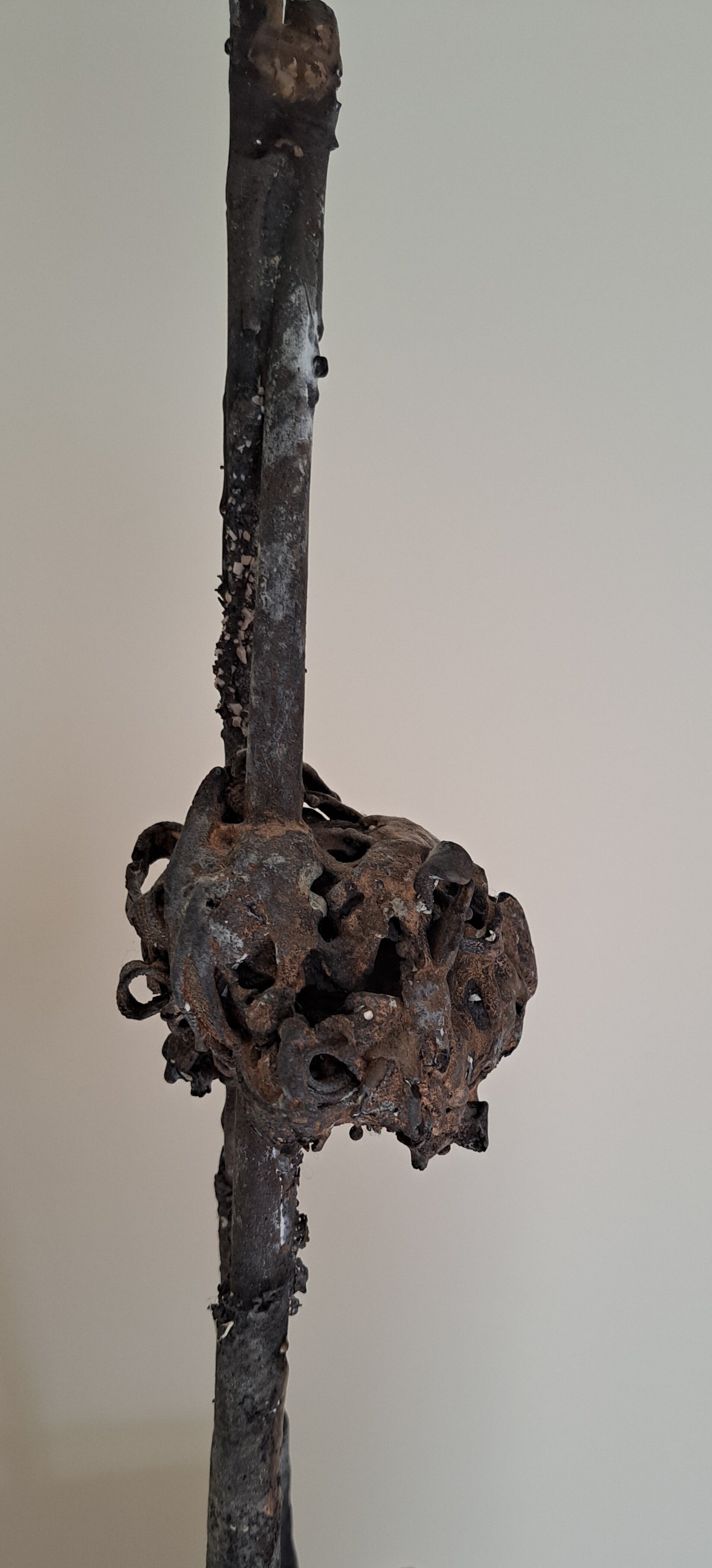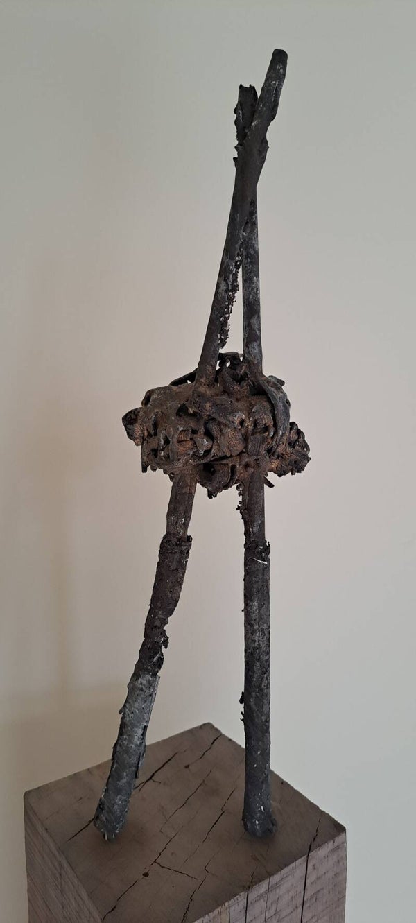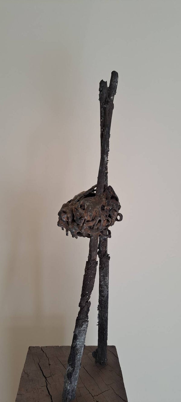 De bronsgieter heeft om dit beeld van afval een gipsen mal gemaakt. Deze mal met beeld gaat de oven in. De rommel, het afval brandt weg. In de holle ruimte blijven asresten over, stukjes onbrandbaar materiaal. In de ruimte die ontstaat wordt brons gegoten. Niet overal kan het vloeibare brons komen; de ruimte is te klein of wordt geblokkeerd. De mal wordt kapotgeslagen. Het oorspronkelijke beeld van afval is in benadering in brons uit de mal gehaald. Het beeld werd minimaal afgewerkt. Met dank aan de bronsgieter Yakov Sala, Arhnem