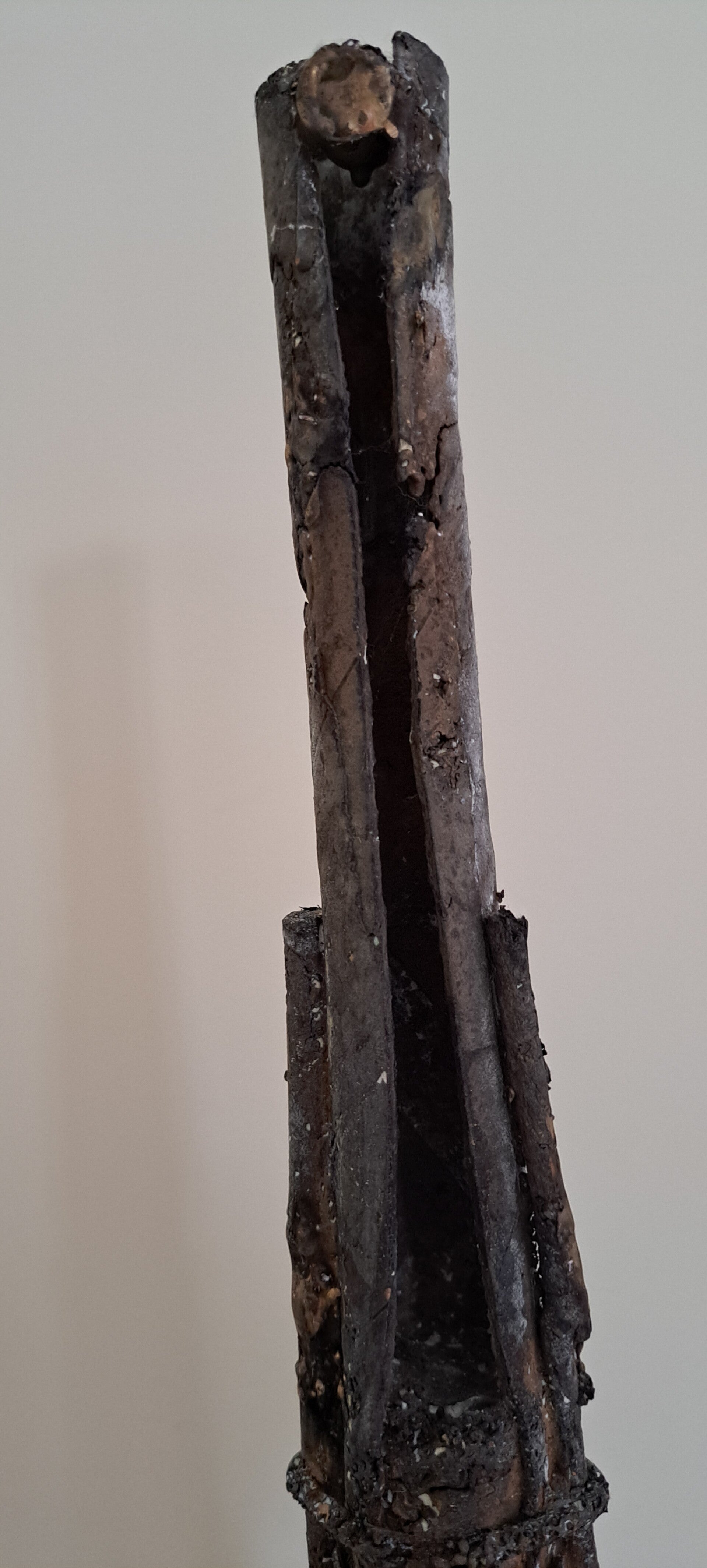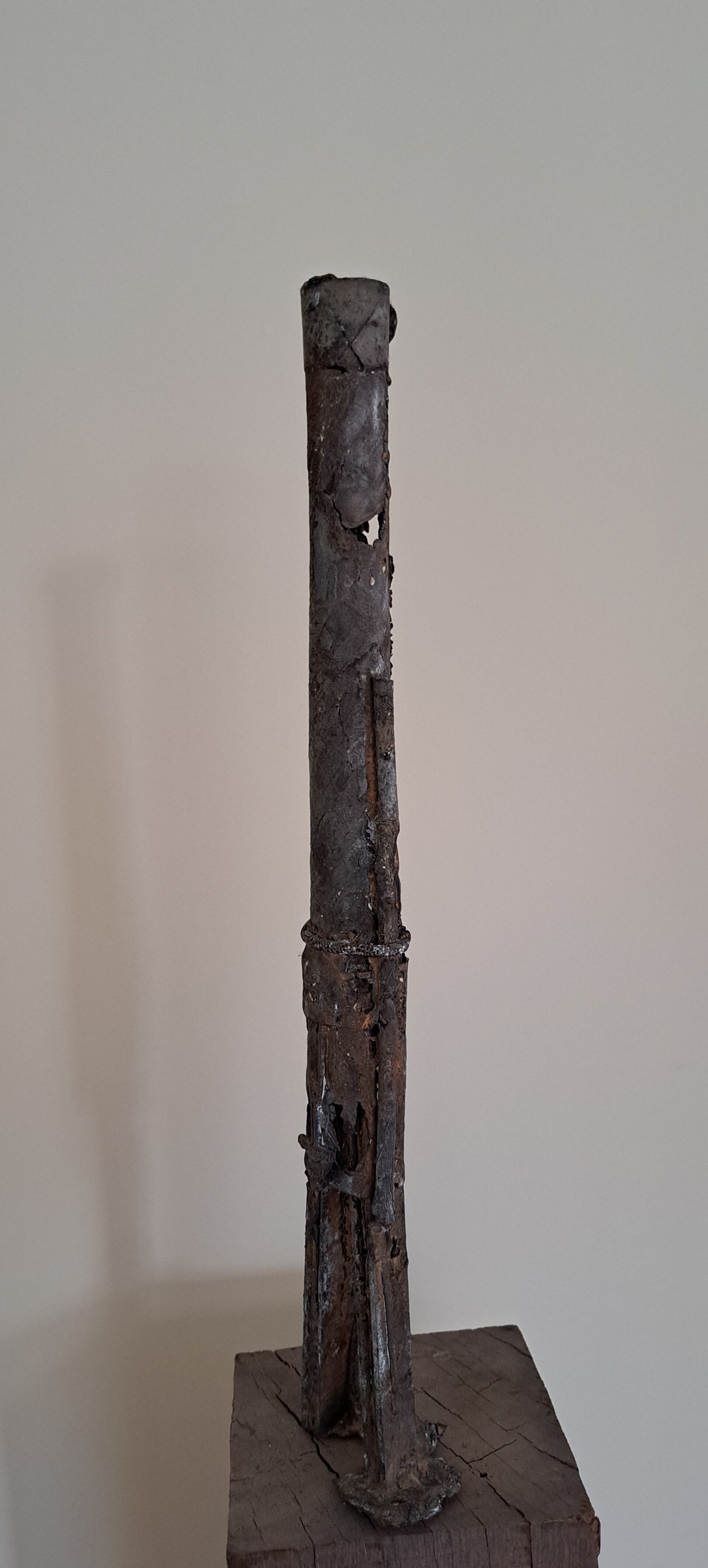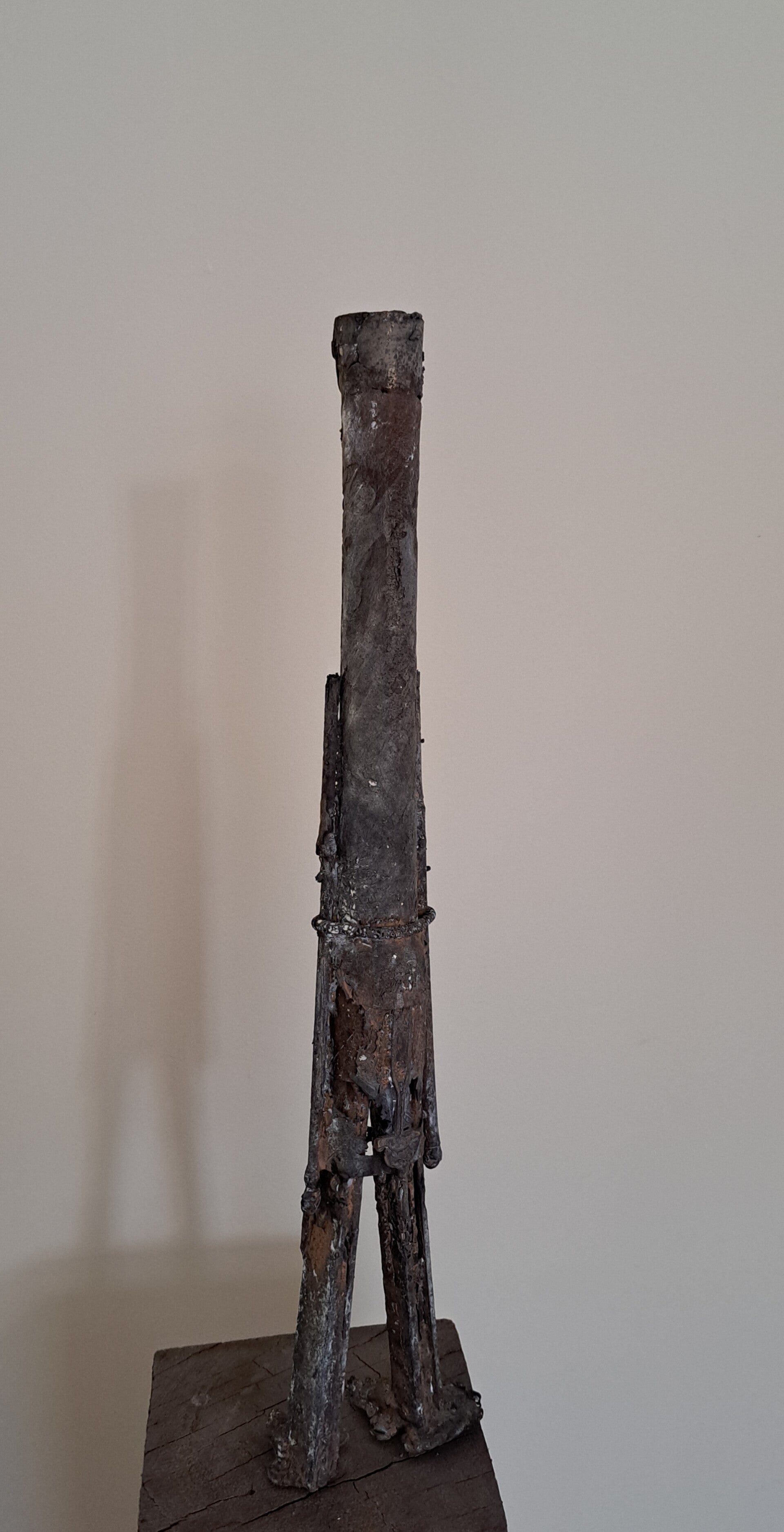 De bronsgieter heeft om dit beeld van afval een gipsen mal gemaakt. Deze mal met beeld gaat de oven in. De rommel, het afval brandt weg. In de holle ruimte blijven asresten over, stukjes onbrandbaar materiaal. In de ruimte die ontstaat wordt brons gegoten. Niet overal kan het vloeibare brons komen; de ruimte is te klein of wordt geblokkeerd. De mal wordt kapotgeslagen. Het oorspronkelijke beeld van afval is in benadering in brons uit de mal gehaald. Het beeld werd minimaal afgewerkt. Met dank aan de bronsgieter Yakov Sala, Arhnem