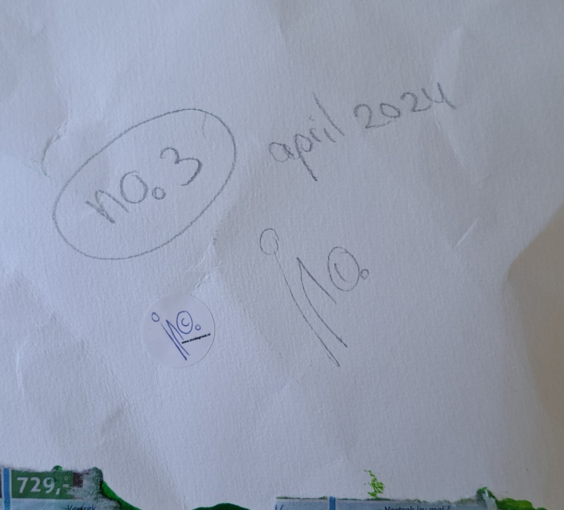 Foto's: tekening, geheel, totaalbeeld, achterkant, detail met handtekening.