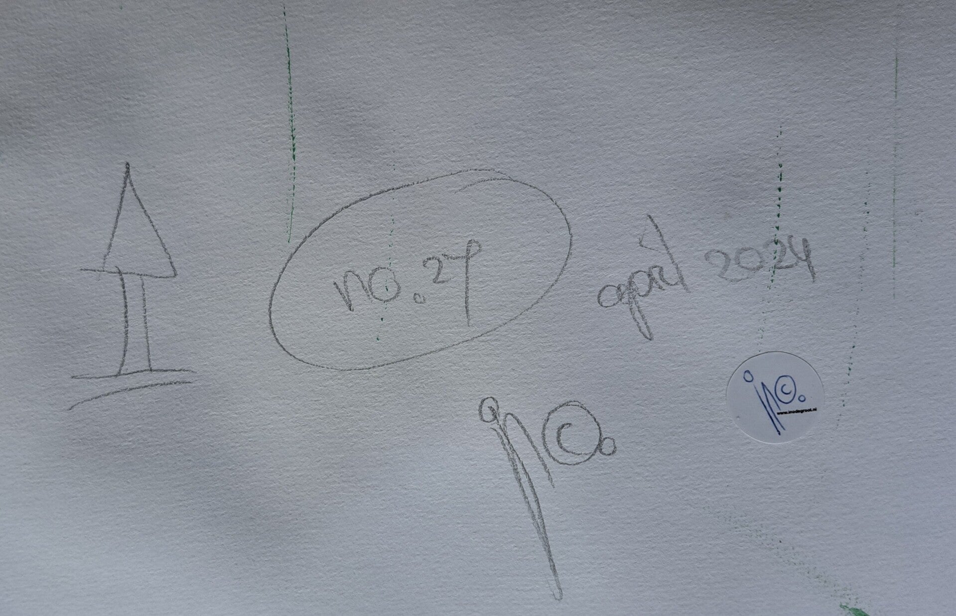 Foto's: tekening, geheel, totaalbeeld, achterkant, detail met handtekening.