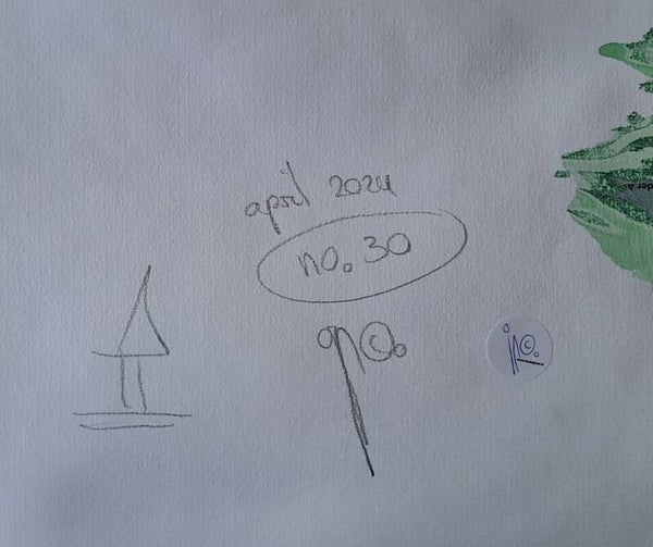 Foto's: tekening, geheel, totaalbeeld, achterkant, detail met handtekening.