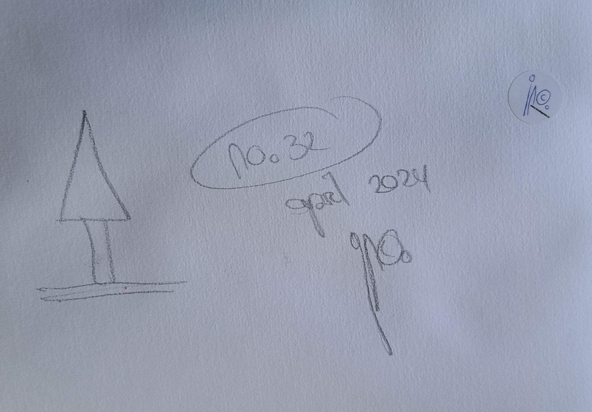Foto's: tekening, geheel, totaalbeeld, achterkant, detail met handtekening.