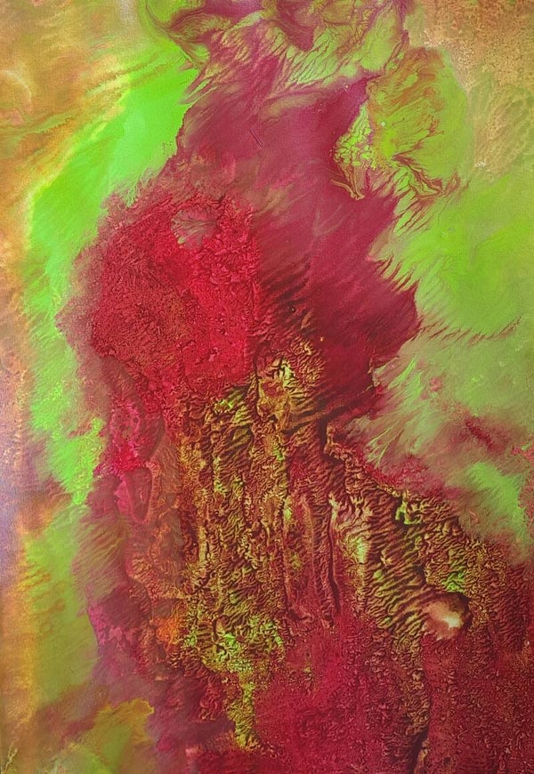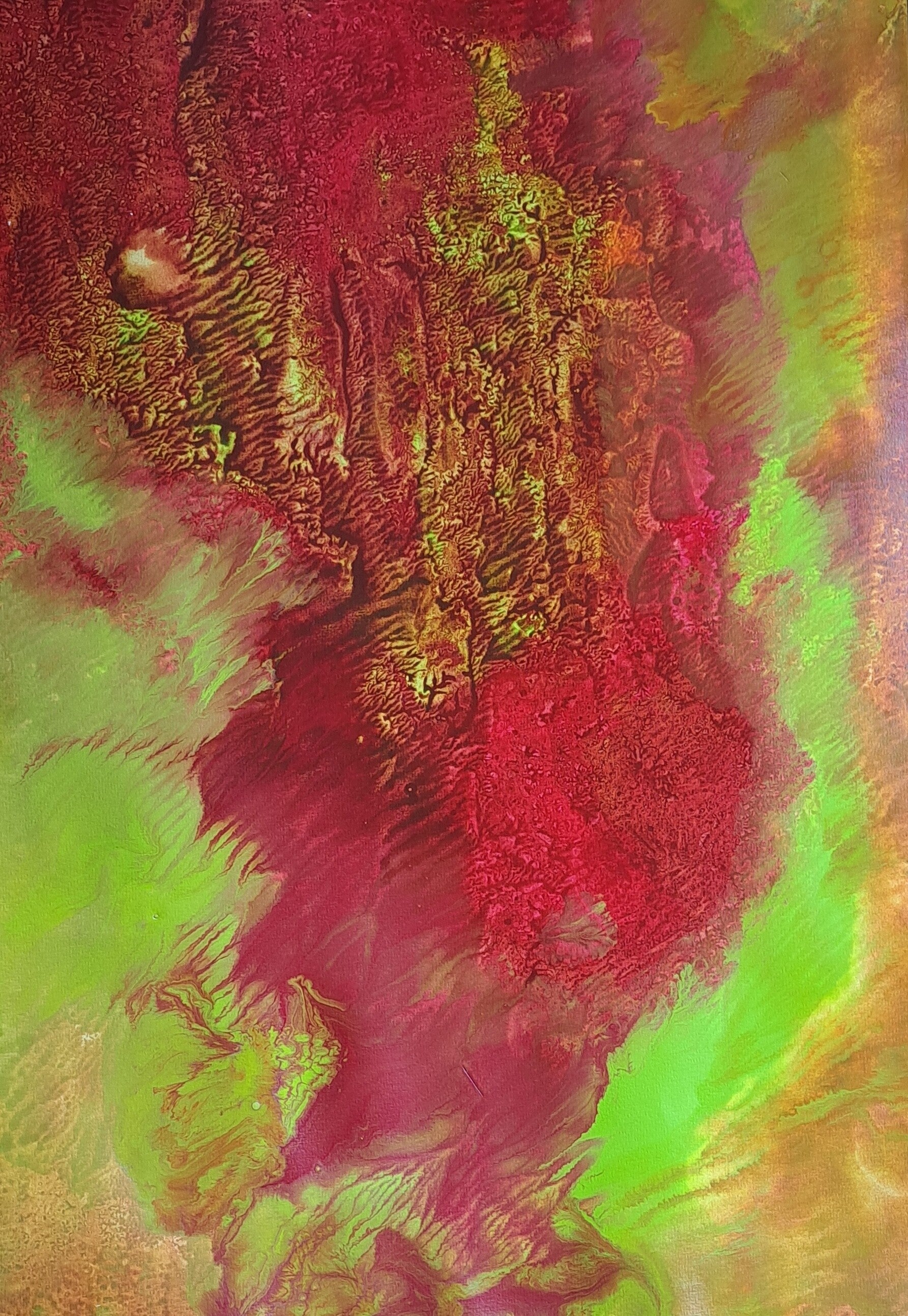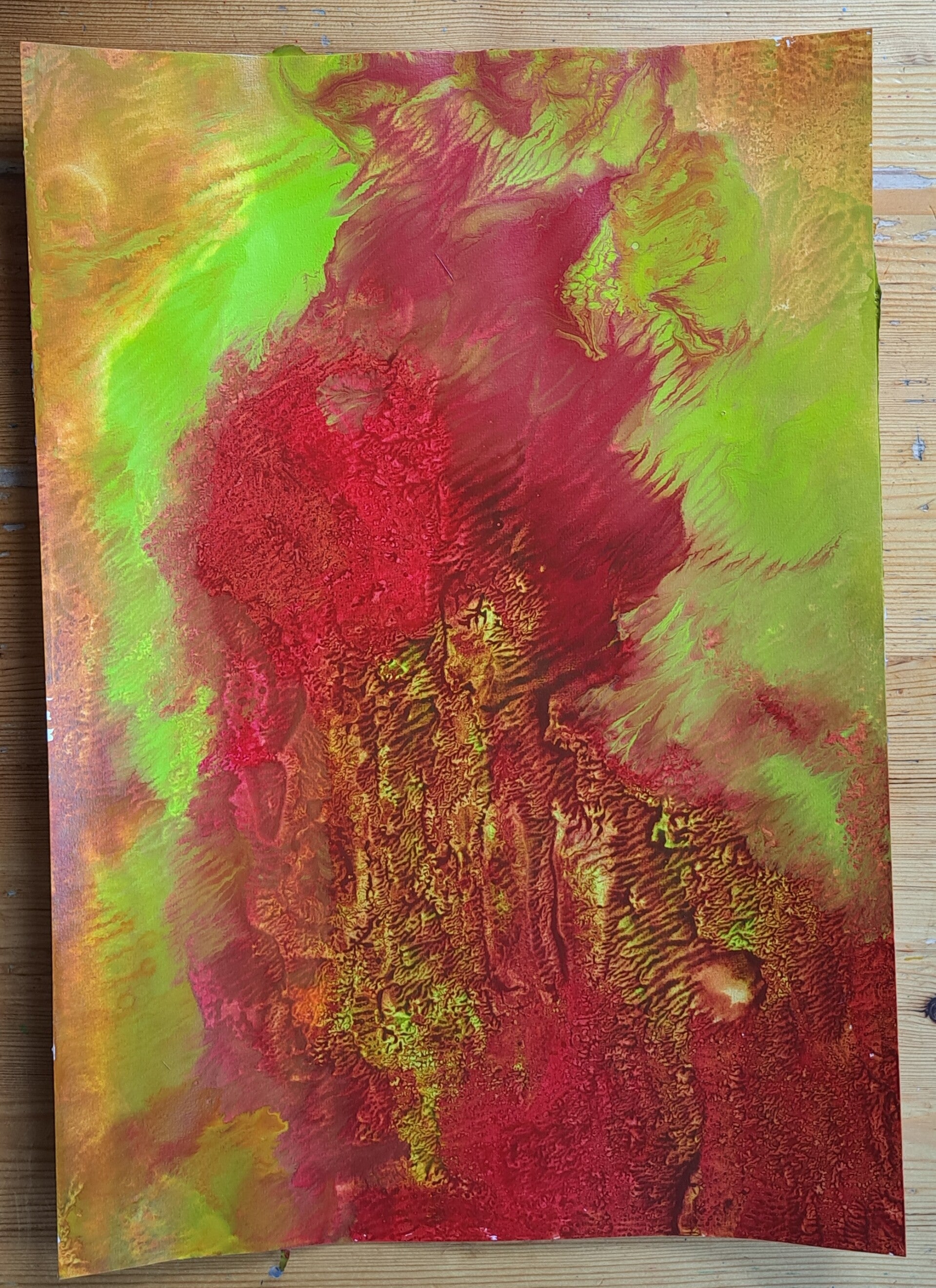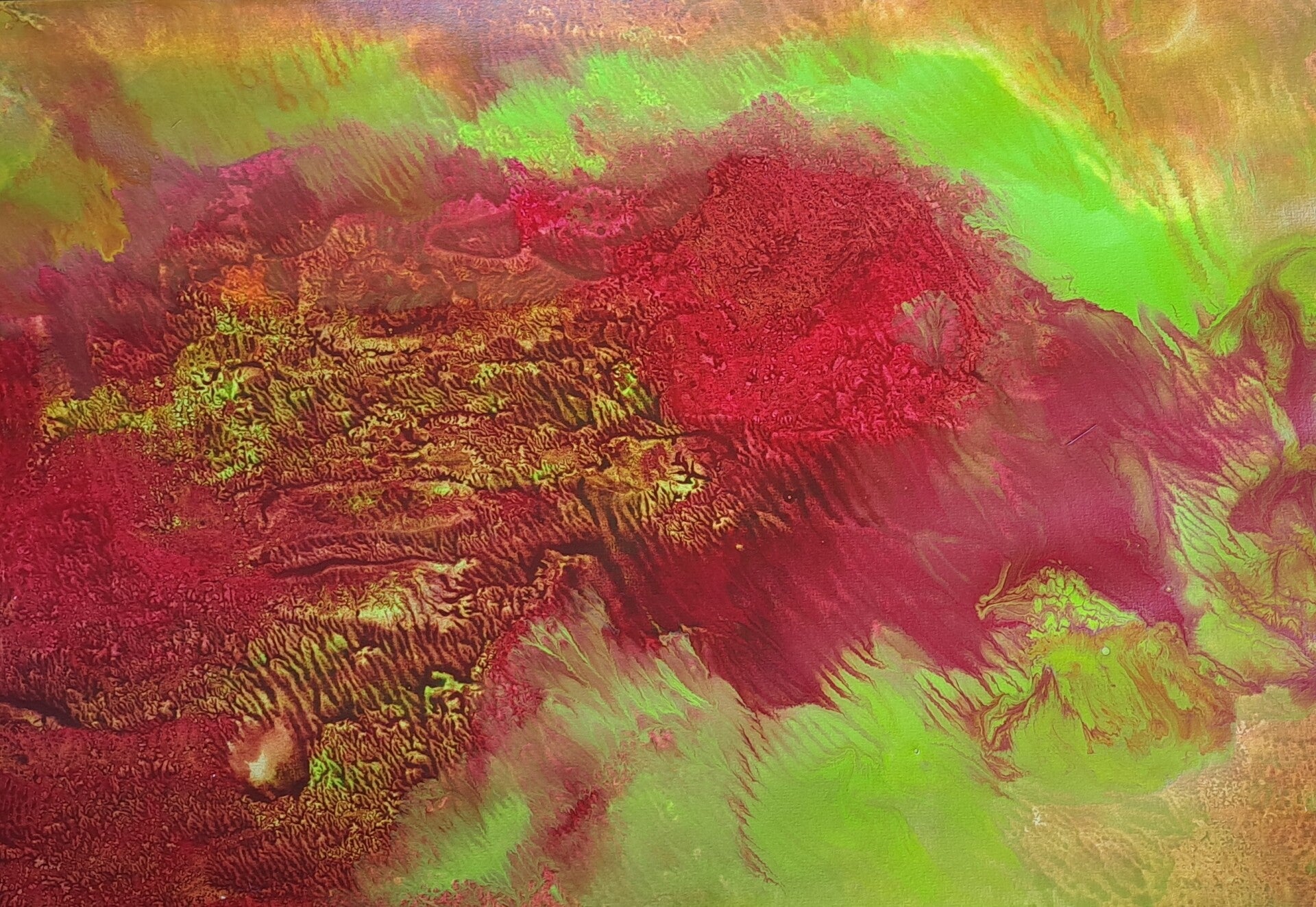 Achtergrond informatie: Het werk is geschilderd met vloeibare acryl - inkt op acrylbasis (Golden high flow acrylics) op papier, formaat 35x50 cm.