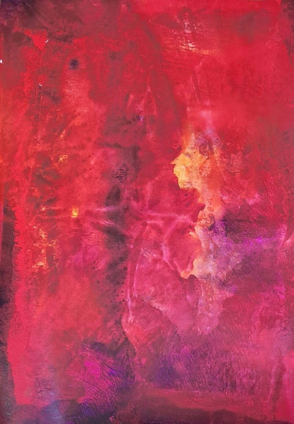 Achtergrond informatie: Het werk is geschilderd met vloeibare acryl - inkt op acrylbasis (Golden high flow acrylics) op papier, formaat 35x50 cm.