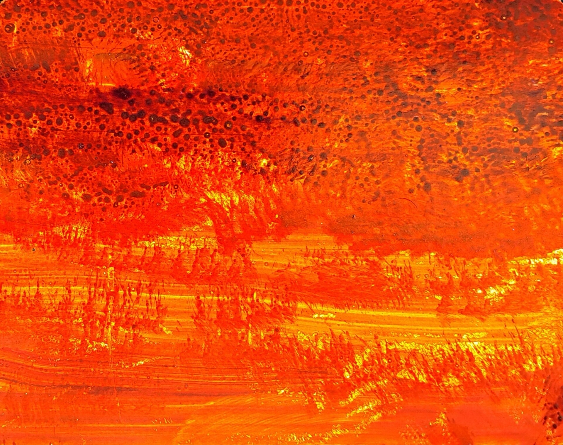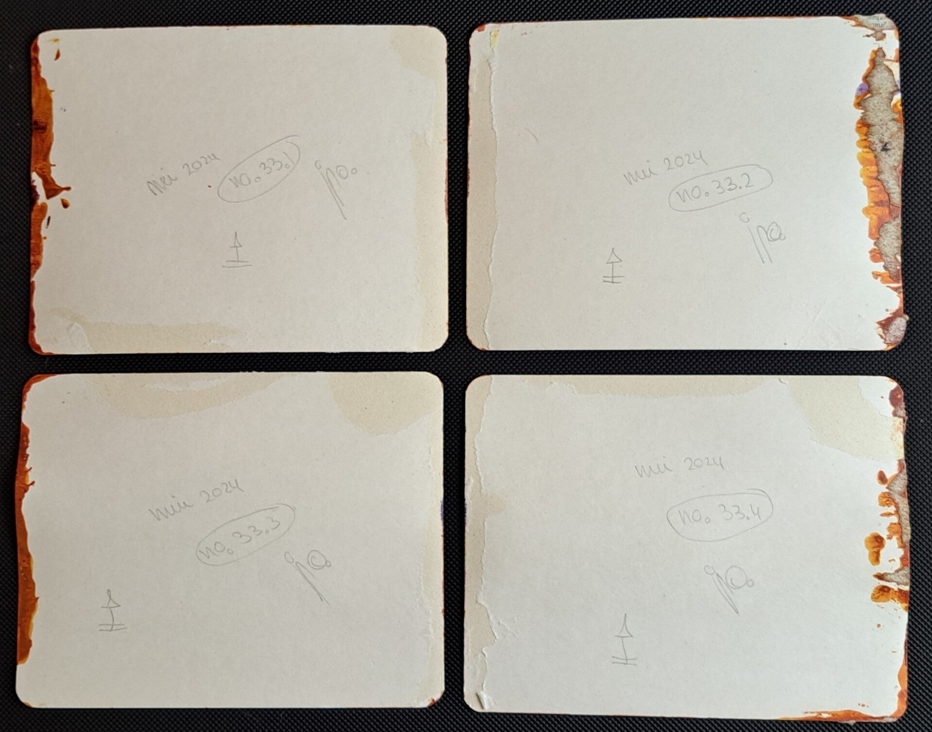 Achtergrond informatie: Het werk is geschilderd met vloeibare acryl - inkt op acrylbasis (Golden high flow acrylics) op papier, formaat een werk ca. 14X20 cm. Formaat geheel ca. 28x40 cm.