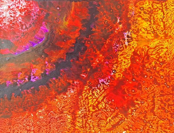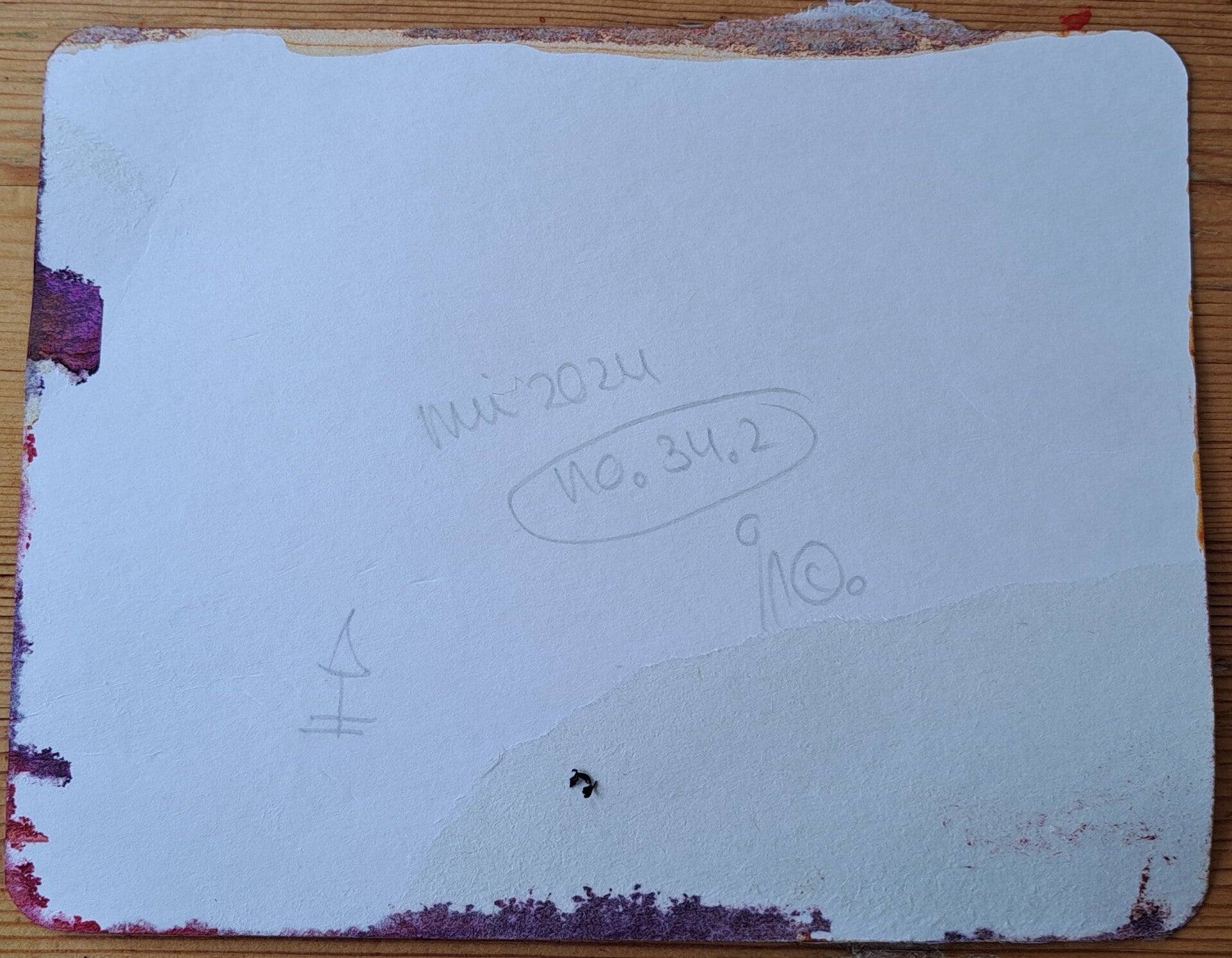 Achtergrond informatie: Het werk is geschilderd met vloeibare acryl - inkt op acrylbasis (Golden high flow acrylics) op papier, formaat een werk ca. 14X20 cm. Formaat geheel ca. 28x40 cm.