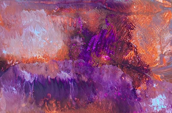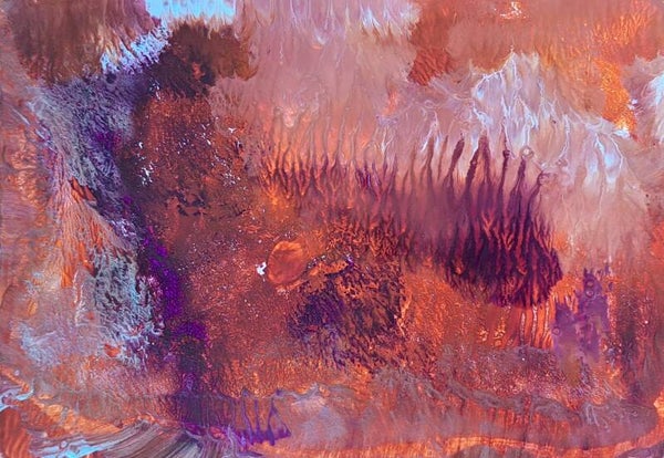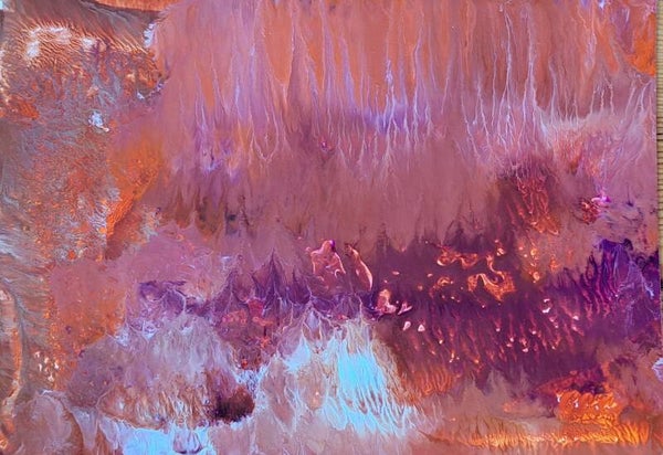 Achtergrond informatie: Het werk is geschilderd met vloeibare acryl - inkt op acrylbasis (Golden high flow acrylics) op papier, formaat een werk ca. 14X20 cm. Formaat geheel ca. 28x40 cm.