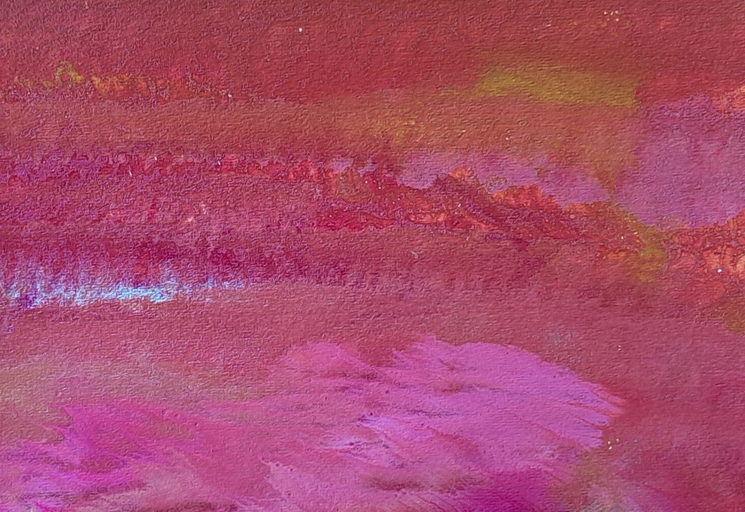 Achtergrond informatie: Het werk is geschilderd met vloeibare acryl - inkt op acrylbasis (Golden high flow acrylics) op papier, formaat een werk ca. 14X20 cm. Formaat geheel ca. 28x40 cm.