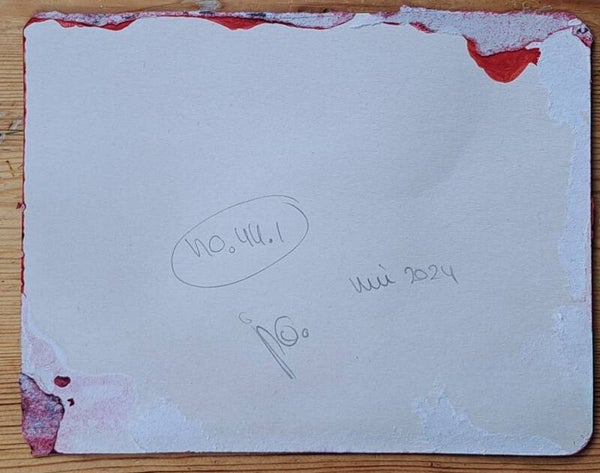 Achtergrond informatie: Het werk is geschilderd met vloeibare acryl - inkt op acrylbasis (Golden high flow acrylics) op papier, formaat een werk ca. 14X20 cm. Formaat geheel ca. 28x40 cm.