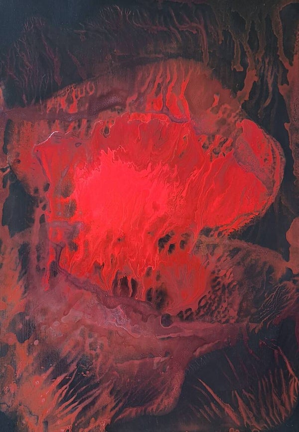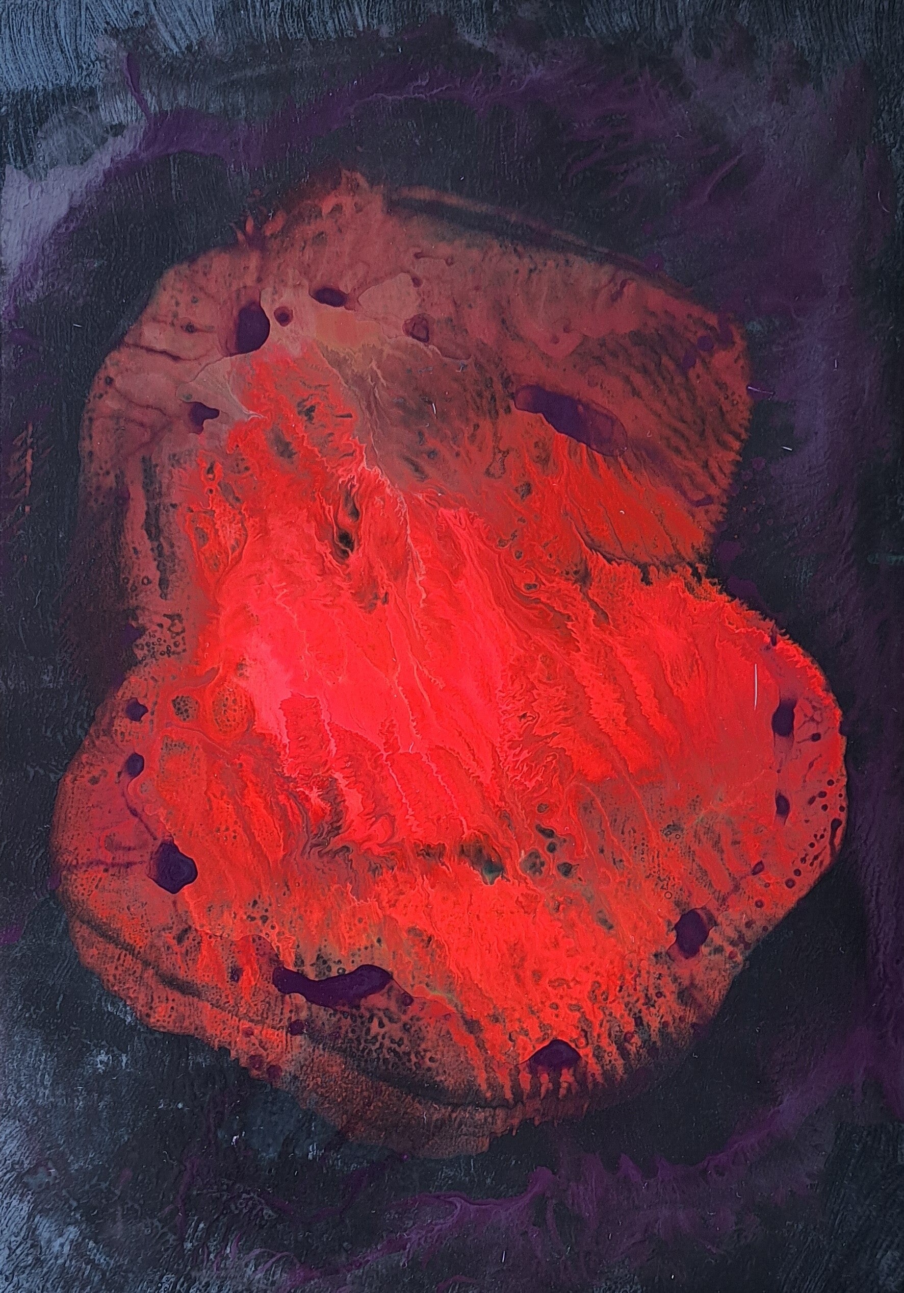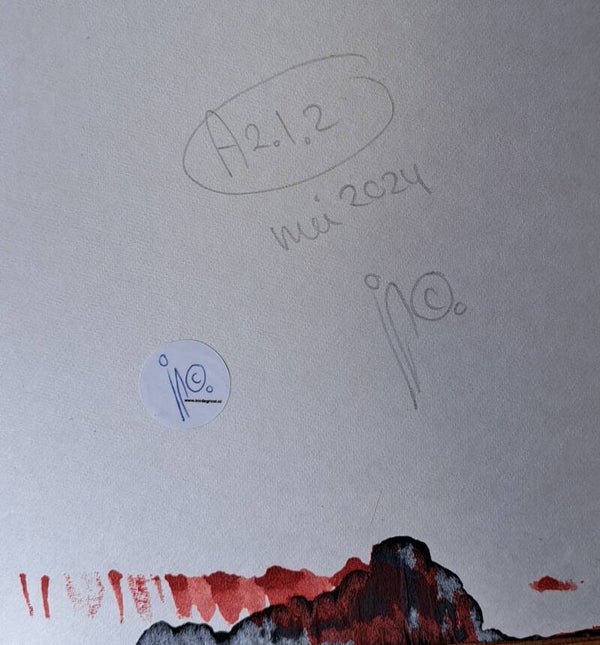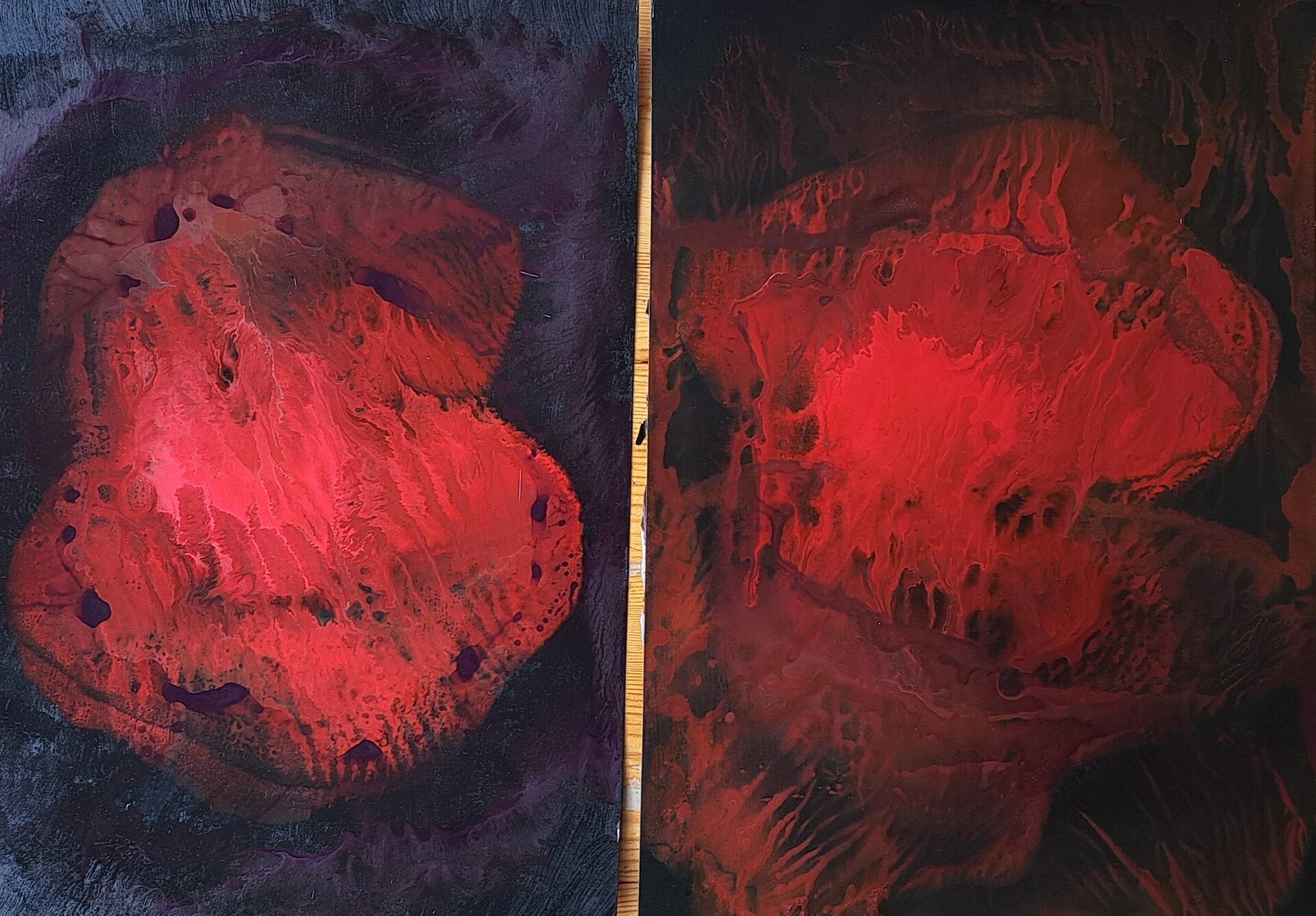 Achtergrond informatie: Het werk is geschilderd met vloeibare acryl - inkt op acrylbasis (Golden high flow acrylics) op schilderkarton, formaat een werk ca. 42X30 cm. (naast elkaar ca. 42x60)