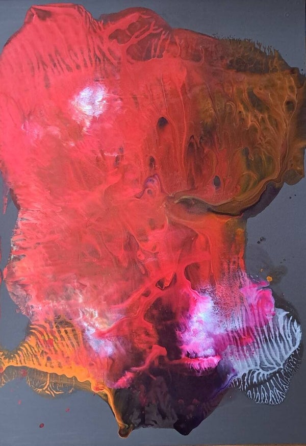 Achtergrond informatie: Het werk is geschilderd met vloeibare acryl - inkt op acrylbasis (Golden high flow acrylics) op schilderkarton2, formaat een werk ca. 42X30 cm. (naast elkaar ca. 42x60)