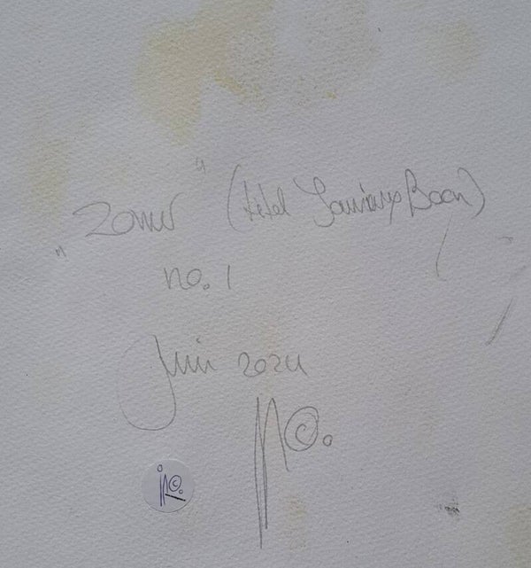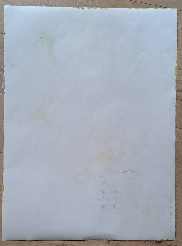 Achtergrond informatie: Het werk is geschilderd met vloeibare acryl - inkt (Golden high flow acrylics) op Saunders Waterford papier, 190 gram per vierkante meter, formaat een werk 56X76 cm.