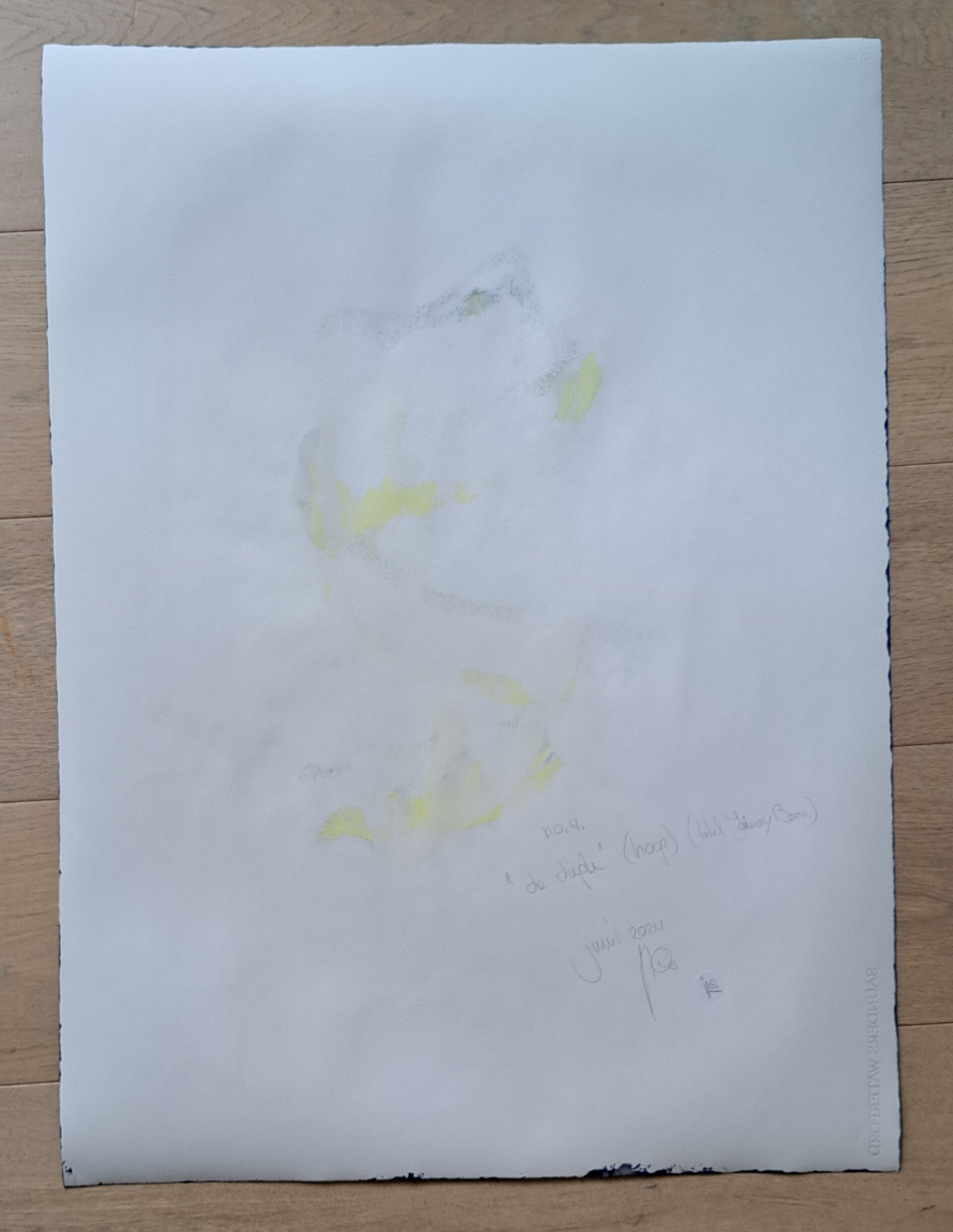 Achtergrond informatie: Het werk is geschilderd met vloeibare acryl - inkt (Golden high flow acrylics) op Saunders Waterford papier, 190 gram per vierkante meter, formaat een werk 56X76 cm.