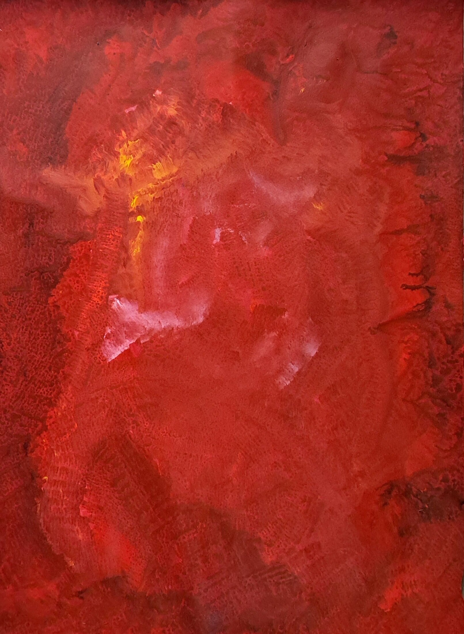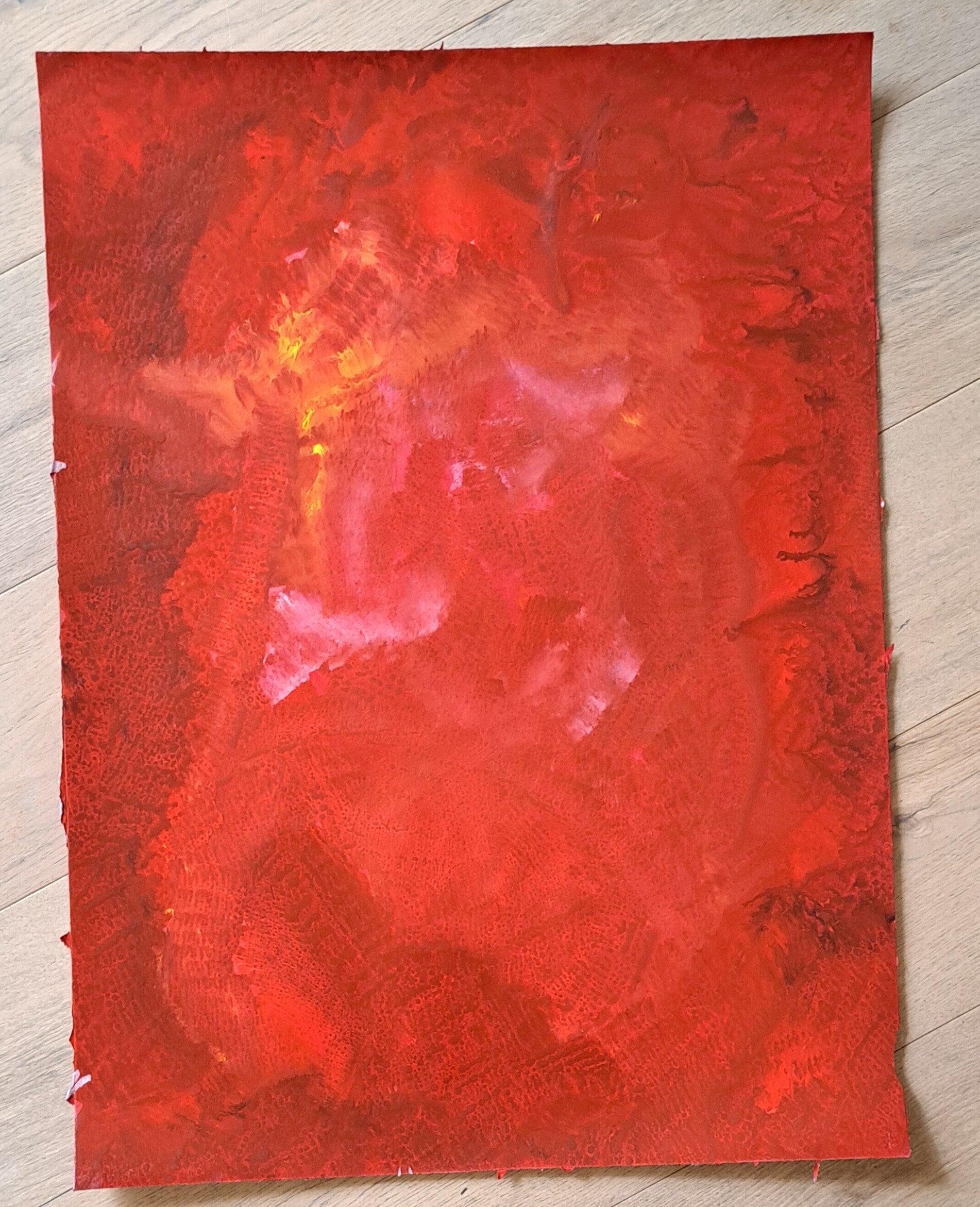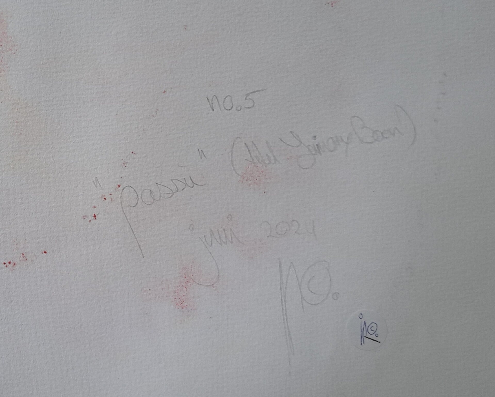 'Fragmenten van vergeten herinneringen' no 1, 'Passie'. Tijdens het schilderen tonen zich flarden van herinneringen. Herinneringen zijn voor mij meestal sferen. Woorden koppelen aan sferen is vaak lastig. Jaimary Boon (vriendin en kunstenaares) gaf het meeste werk titels. Zij keek naar mijn werk en reageerde direct.