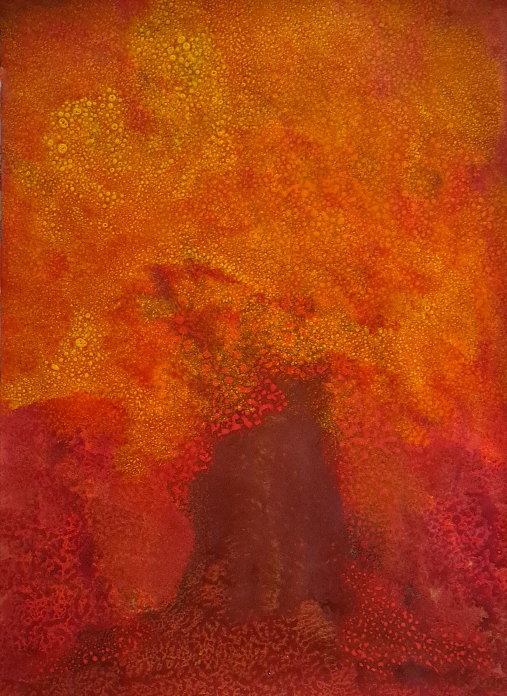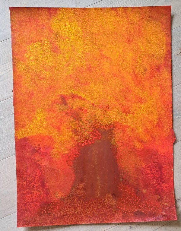 Achtergrond informatie: Het werk is geschilderd met vloeibare acryl - inkt (Golden high flow acrylics) op Saunders Waterford papier, 190 gram per vierkante meter, formaat een werk 56X76 cm.