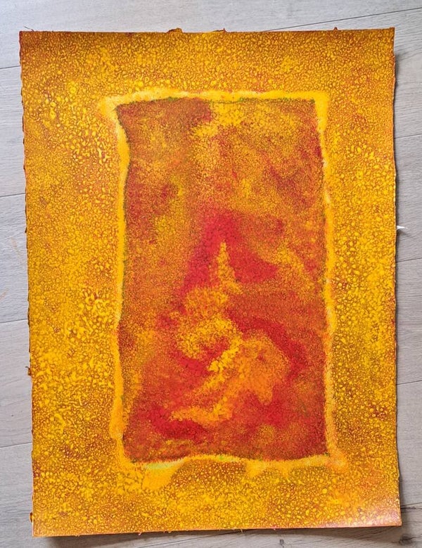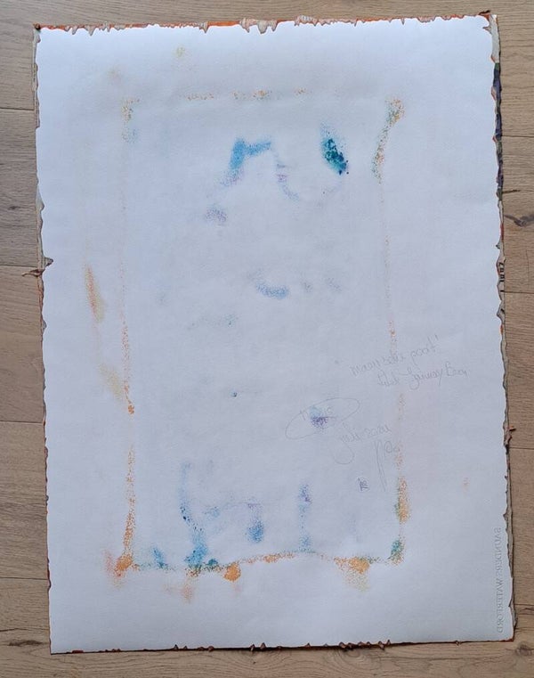 Achtergrond informatie: Het werk is geschilderd met vloeibare acryl - inkt (Golden high flow acrylics) op Saunders Waterford papier, 190 gram per vierkante meter, formaat een werk 56X76 cm.