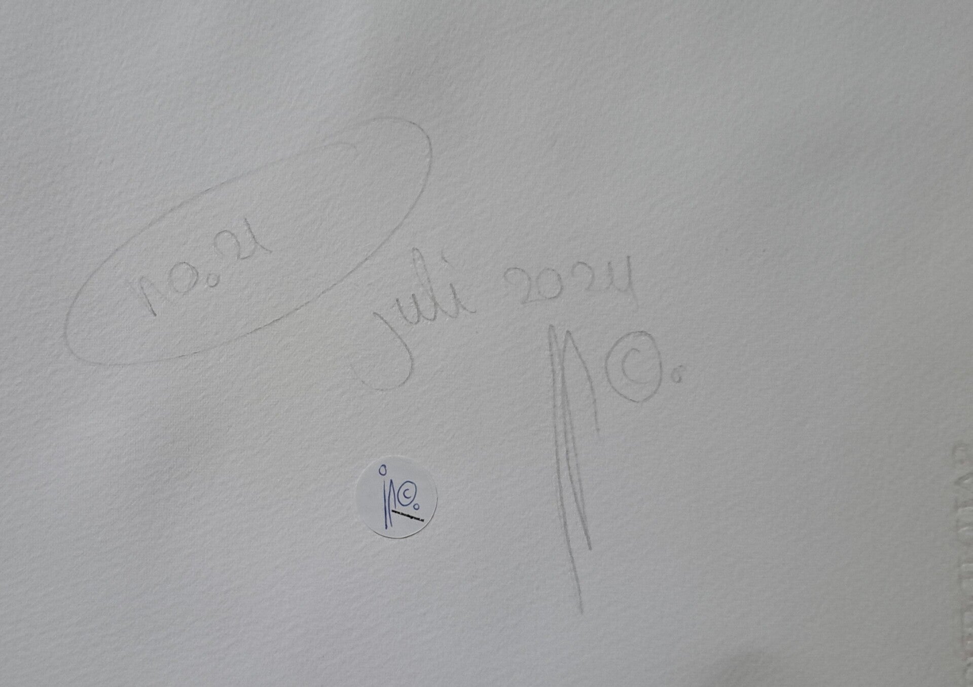 Achtergrond informatie: Het werk is geschilderd met vloeibare acryl - inkt (Golden high flow acrylics) op Saunders Waterford papier, 190 gram per vierkante meter, formaat een werk 56X76 cm.