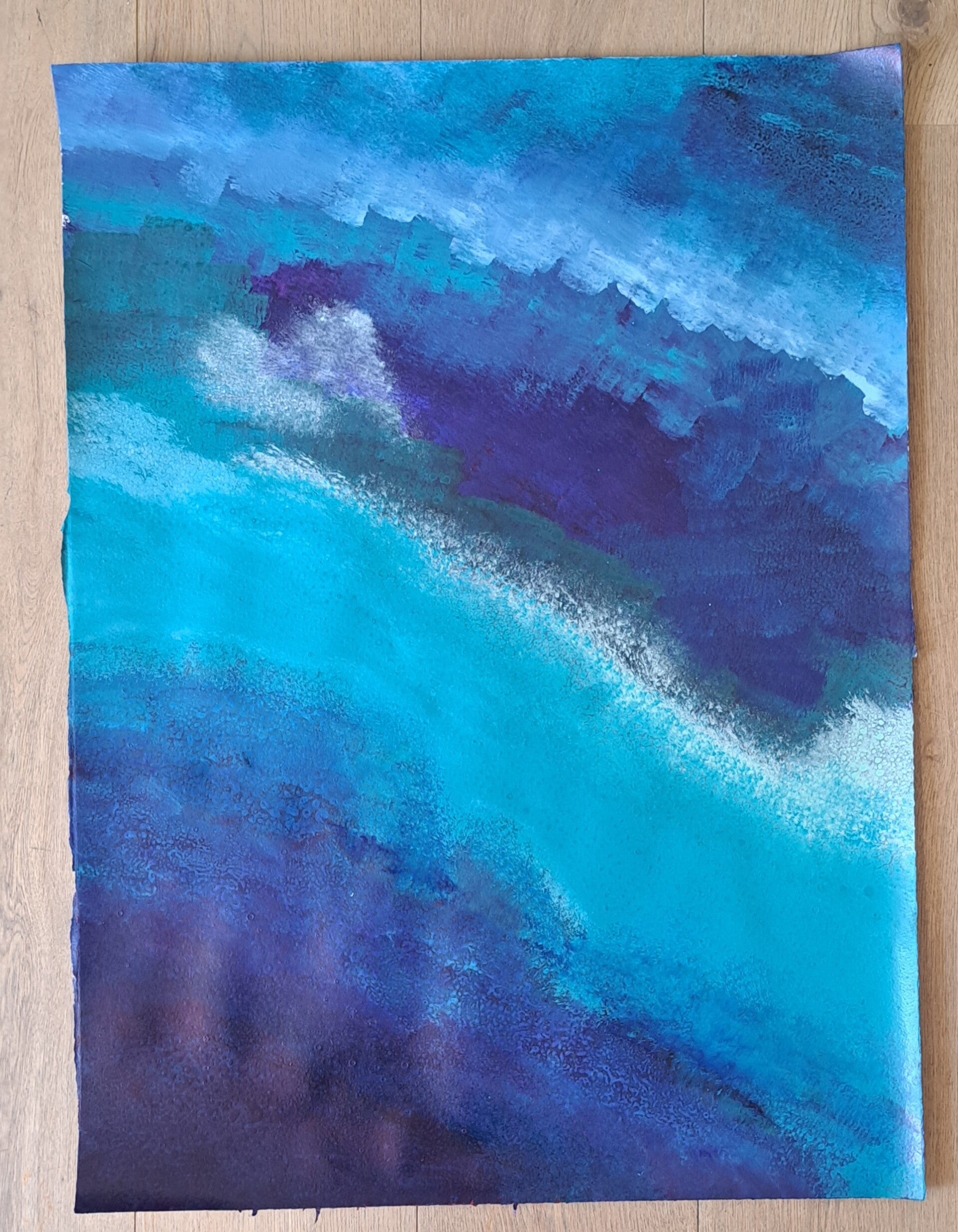 Achtergrond informatie: Het werk is geschilderd met vloeibare acryl - inkt (Golden high flow acrylics) op Saunders Waterford papier, 190 gram per vierkante meter, formaat een werk 56X76 cm.