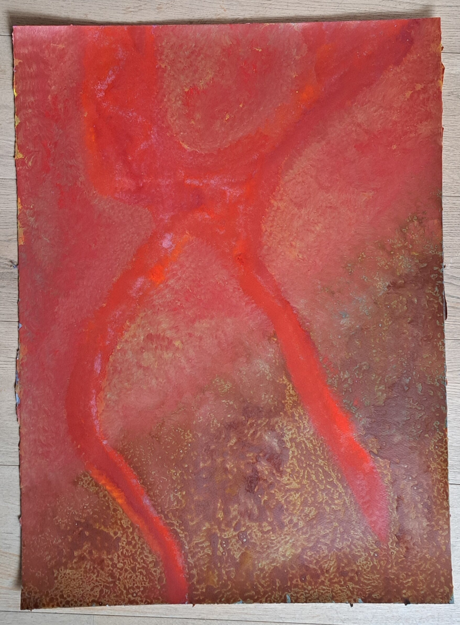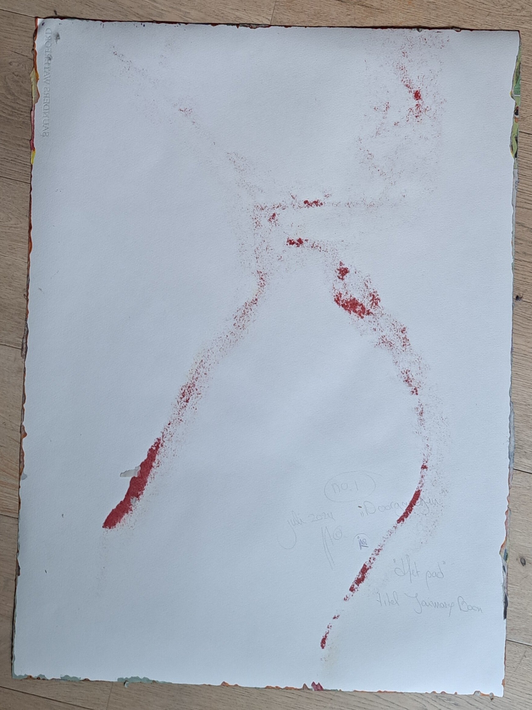 Achtergrond informatie: Het werk is geschilderd met vloeibare acryl - inkt (Golden high flow acrylics) op Saunders Waterford papier, 190 gram per vierkante meter, formaat een werk 56X76 cm.