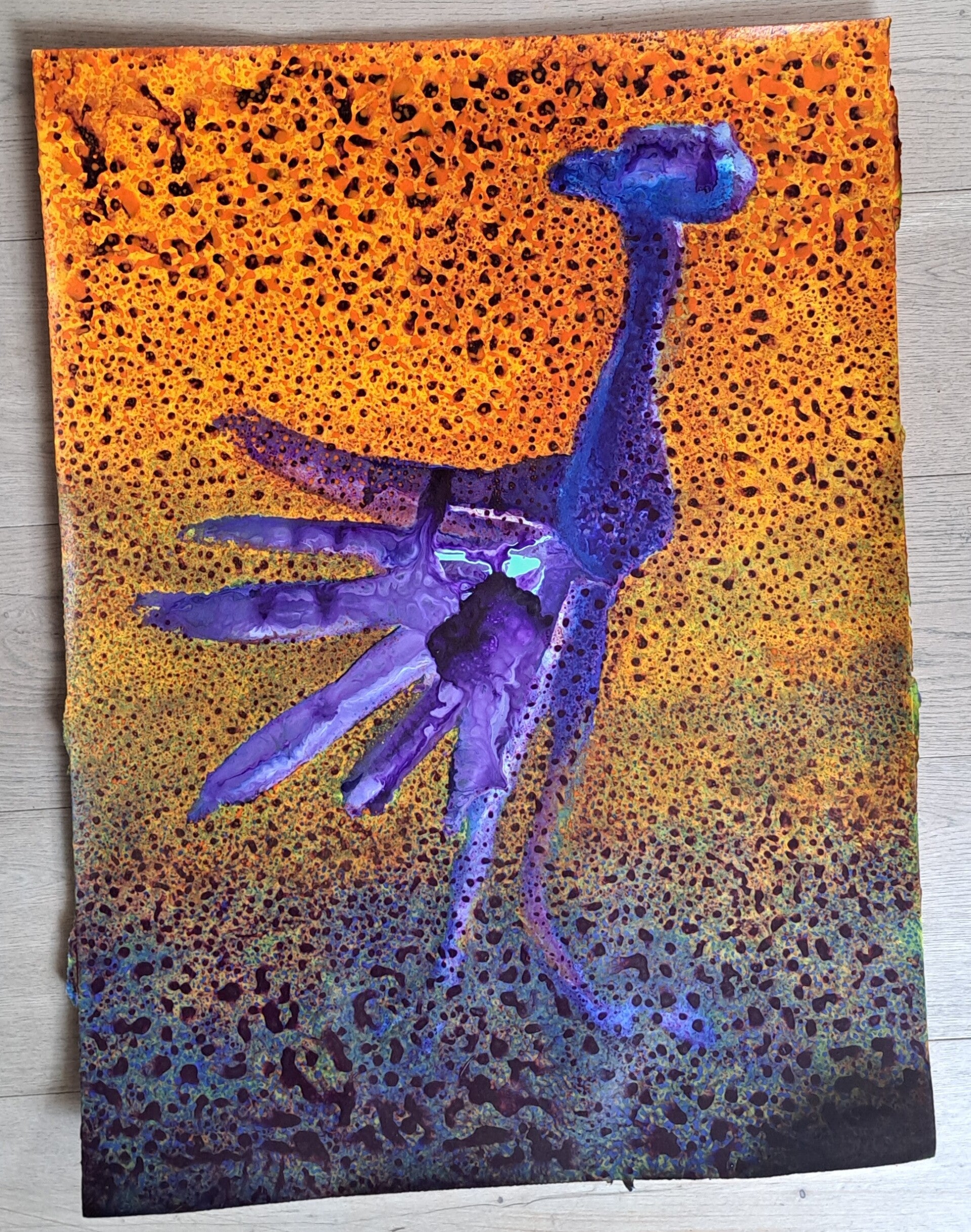 Achtergrond informatie: Het werk is geschilderd met vloeibare acryl - inkt (Golden high flow acrylics) op Saunders Waterford papier, 190 gram per vierkante meter, formaat een werk 56X76 cm.
